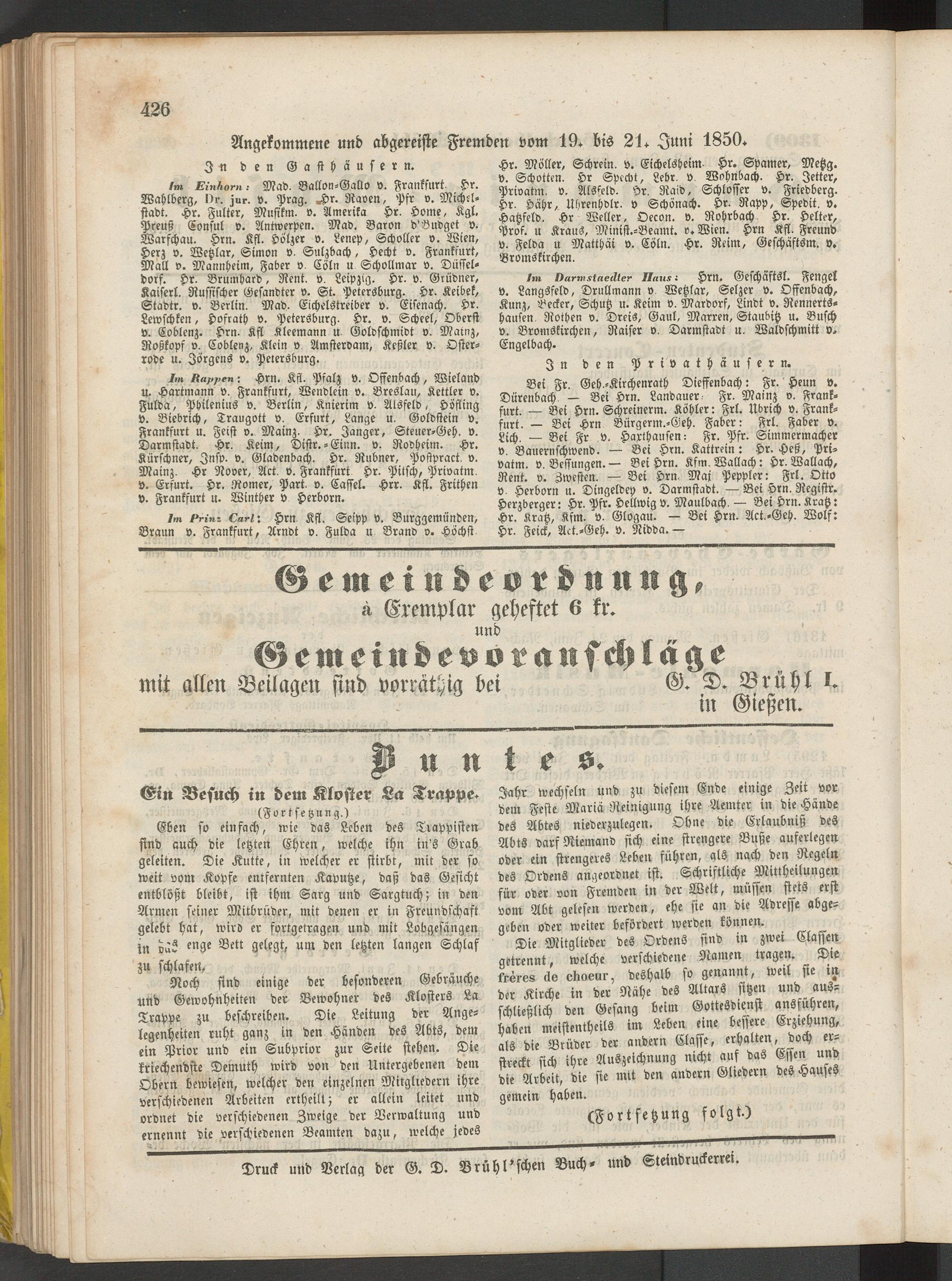 Anzeigeblatt für die Provinzialhauptstadt Gießen. 1840-1867