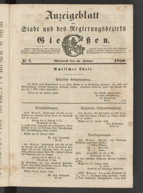 Anzeigeblatt für die Provinzialhauptstadt Gießen. 1840-1867