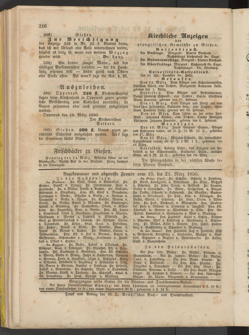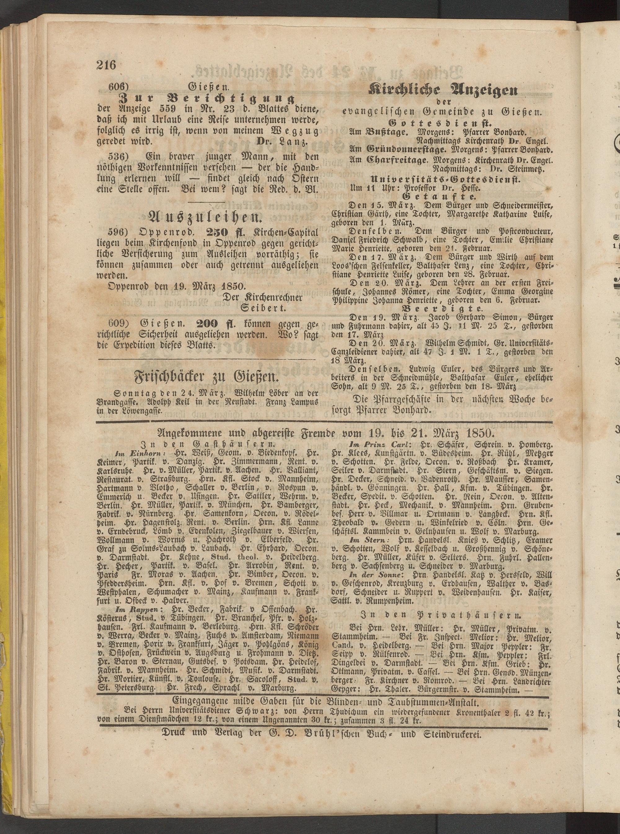 Anzeigeblatt für die Provinzialhauptstadt Gießen. 1840-1867