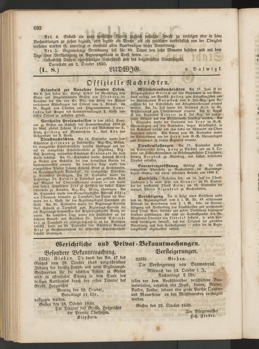 Anzeigeblatt für die Provinzialhauptstadt Gießen. 1840-1867