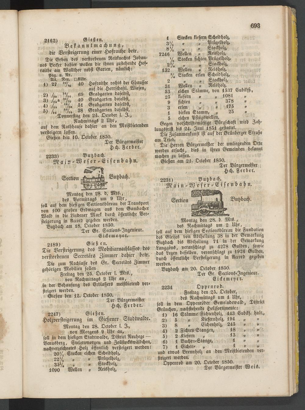 Anzeigeblatt für die Provinzialhauptstadt Gießen. 1840-1867