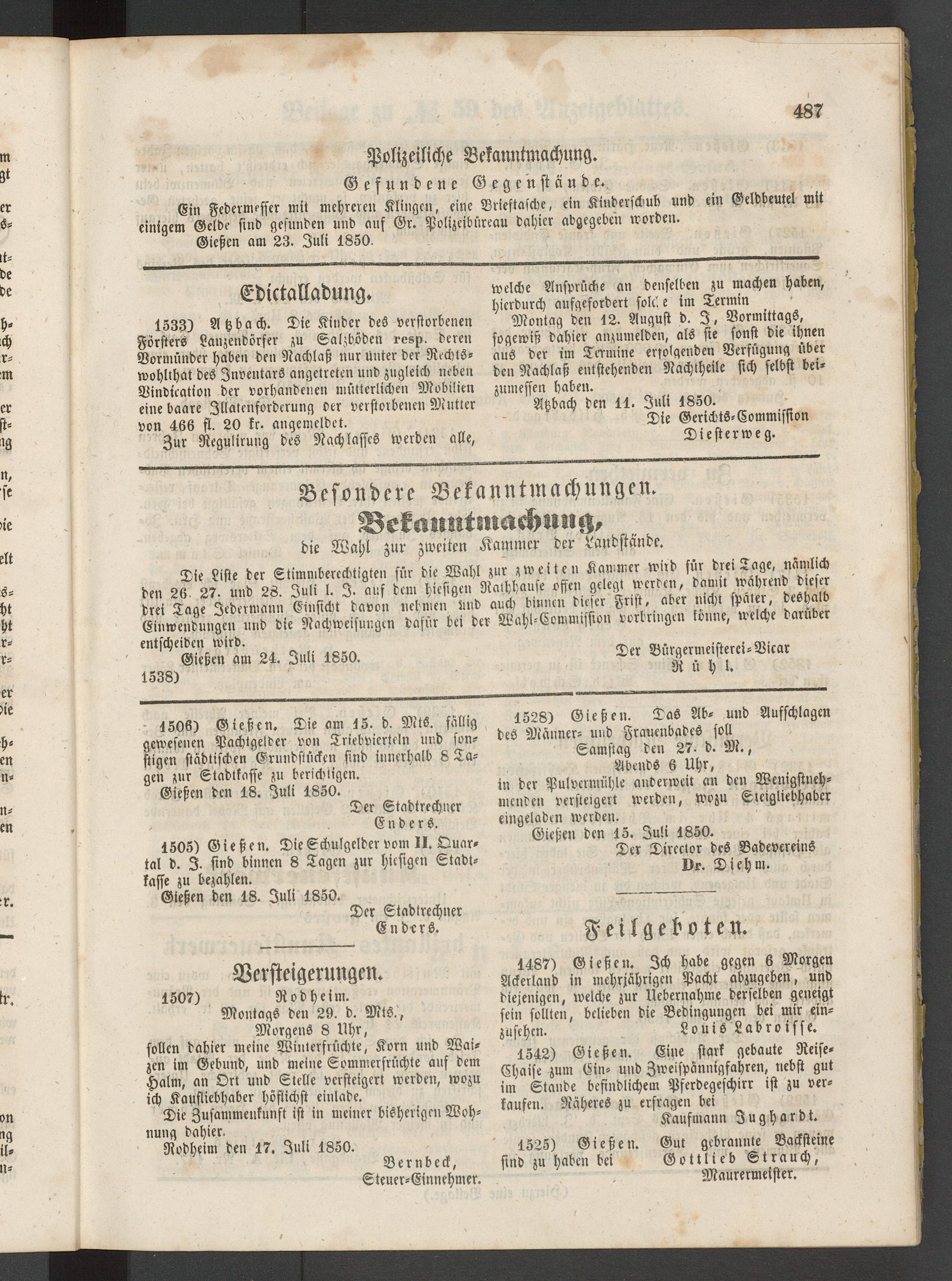Anzeigeblatt für die Provinzialhauptstadt Gießen. 1840-1867