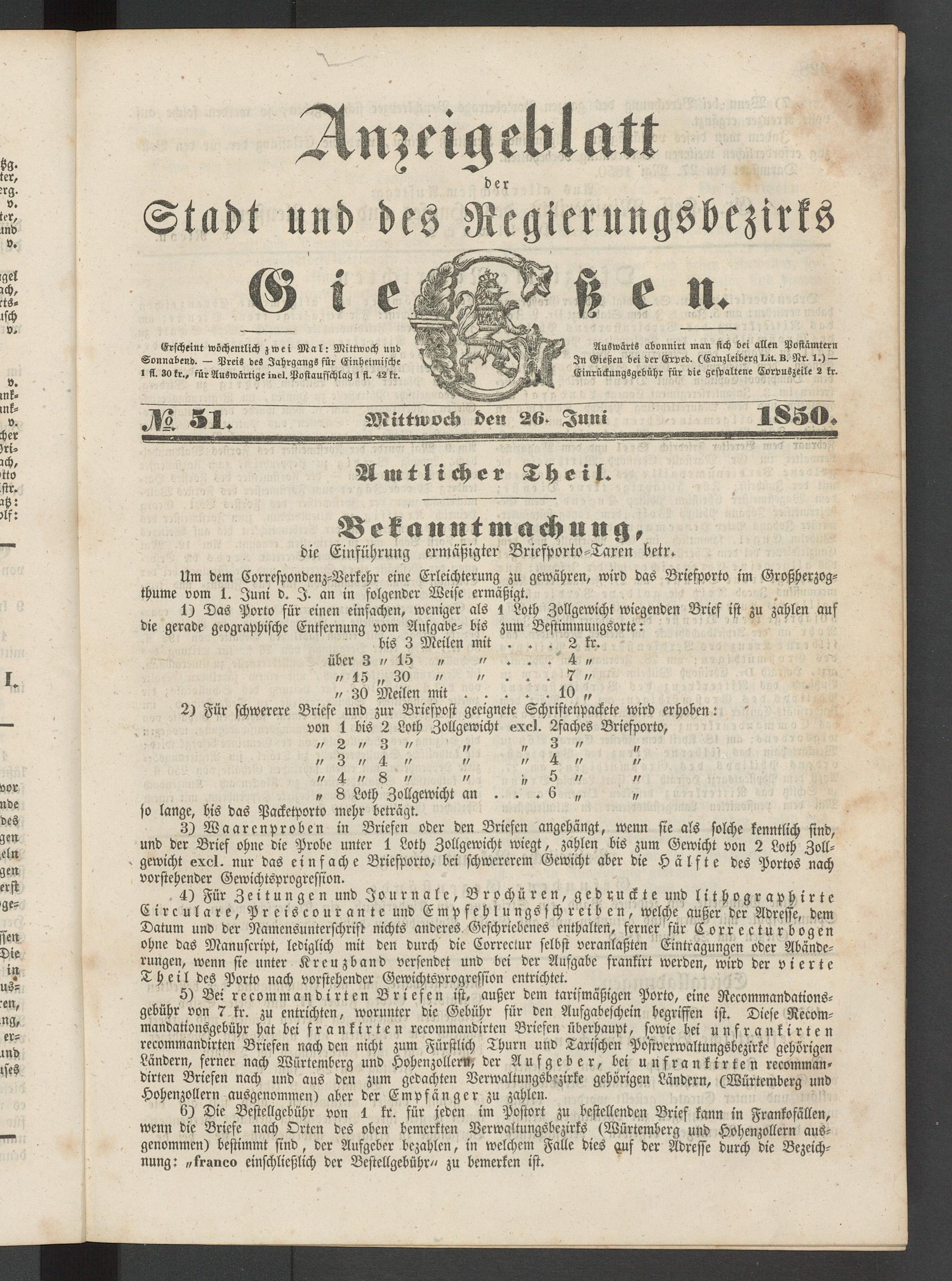 Anzeigeblatt für die Provinzialhauptstadt Gießen. 1840-1867
