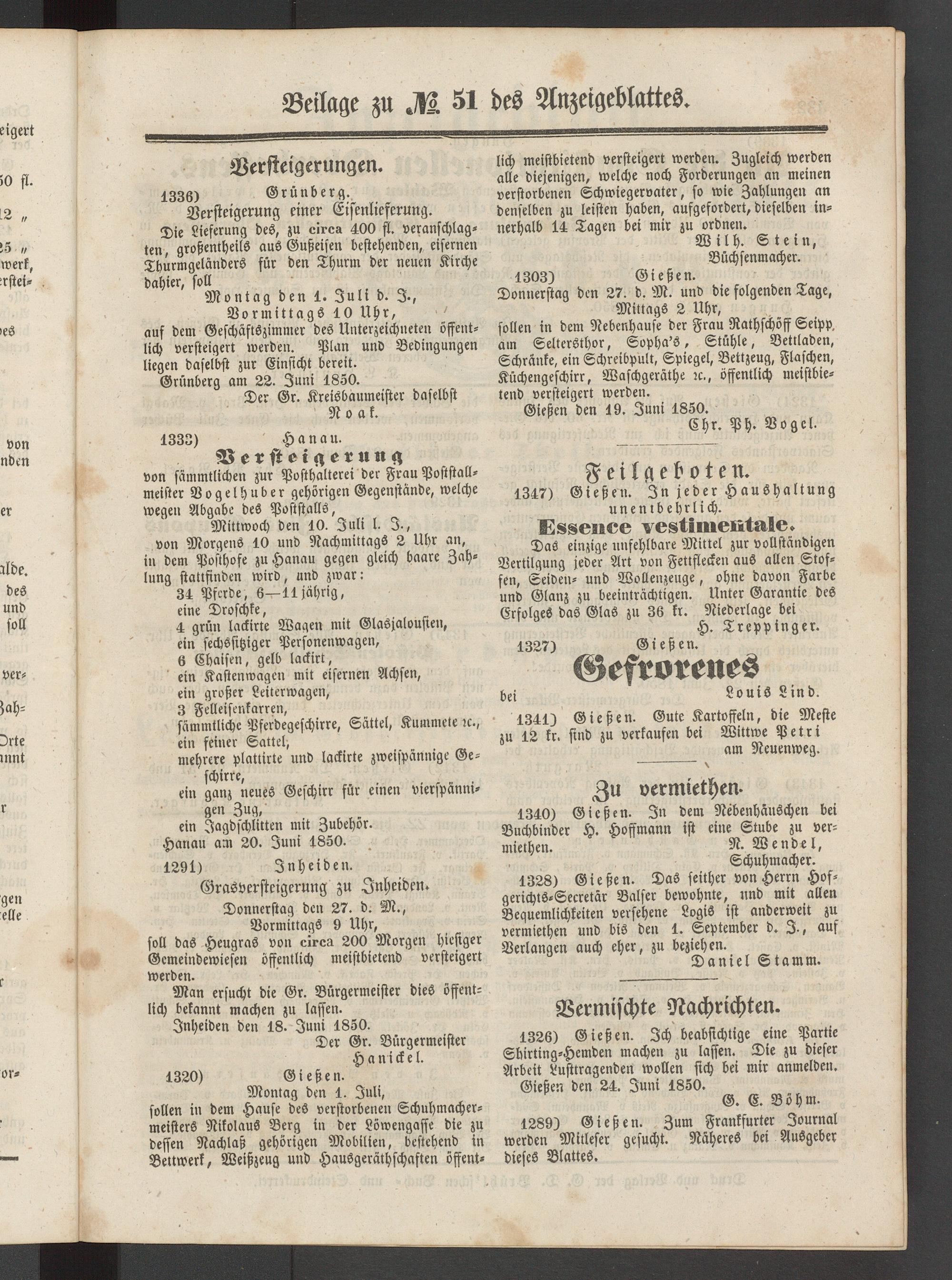 Anzeigeblatt für die Provinzialhauptstadt Gießen. 1840-1867