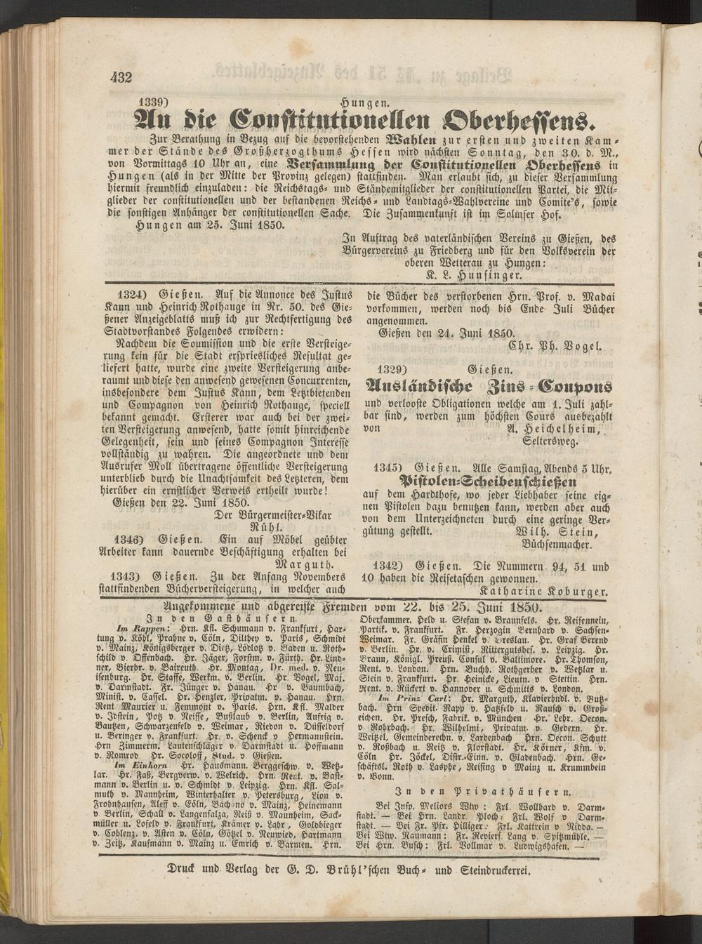 Anzeigeblatt für die Provinzialhauptstadt Gießen. 1840-1867