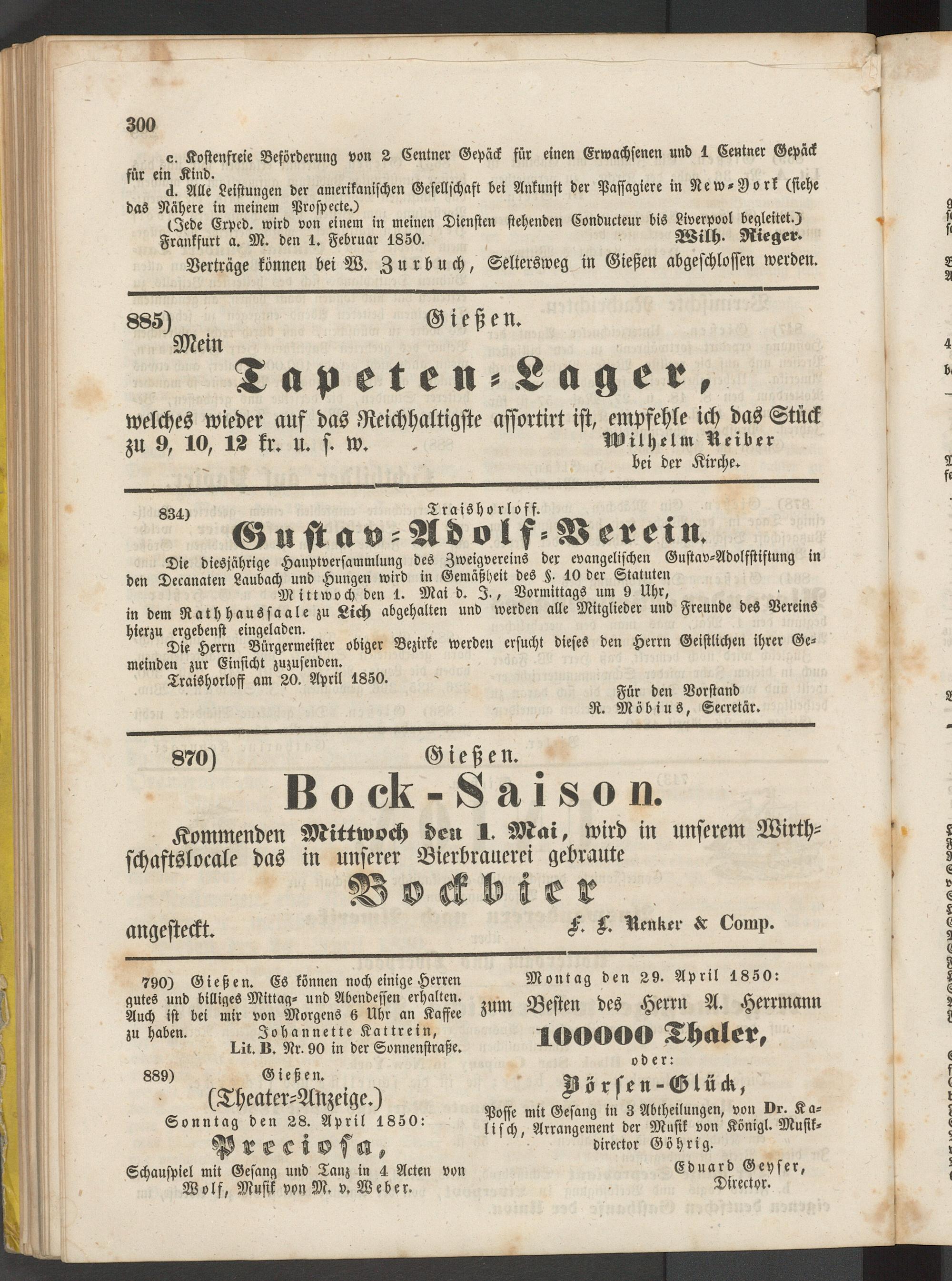 Anzeigeblatt für die Provinzialhauptstadt Gießen. 1840-1867