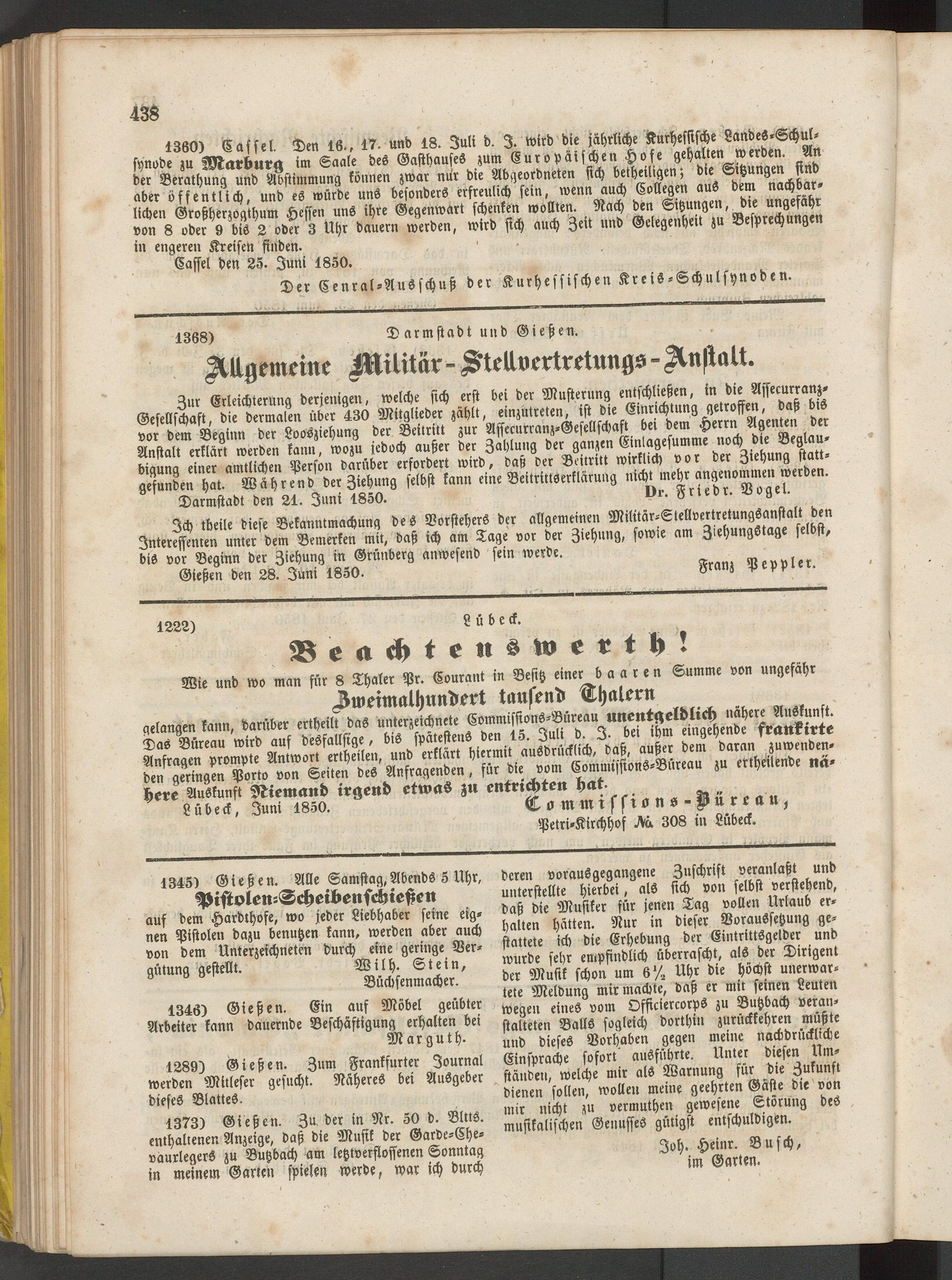Anzeigeblatt für die Provinzialhauptstadt Gießen. 1840-1867
