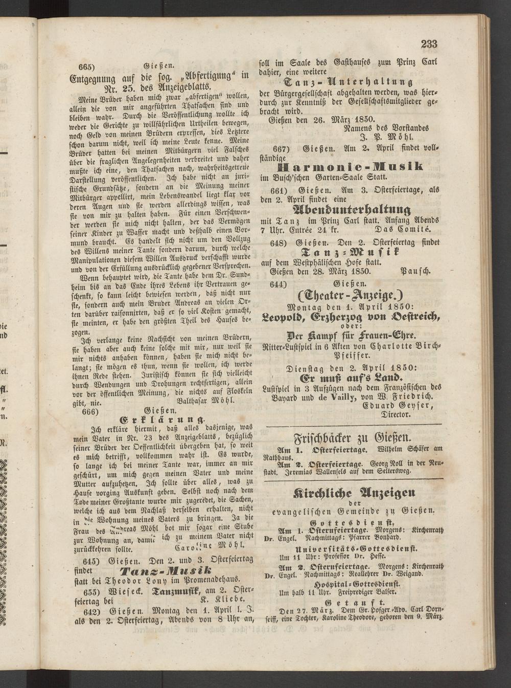 Anzeigeblatt für die Provinzialhauptstadt Gießen. 1840-1867