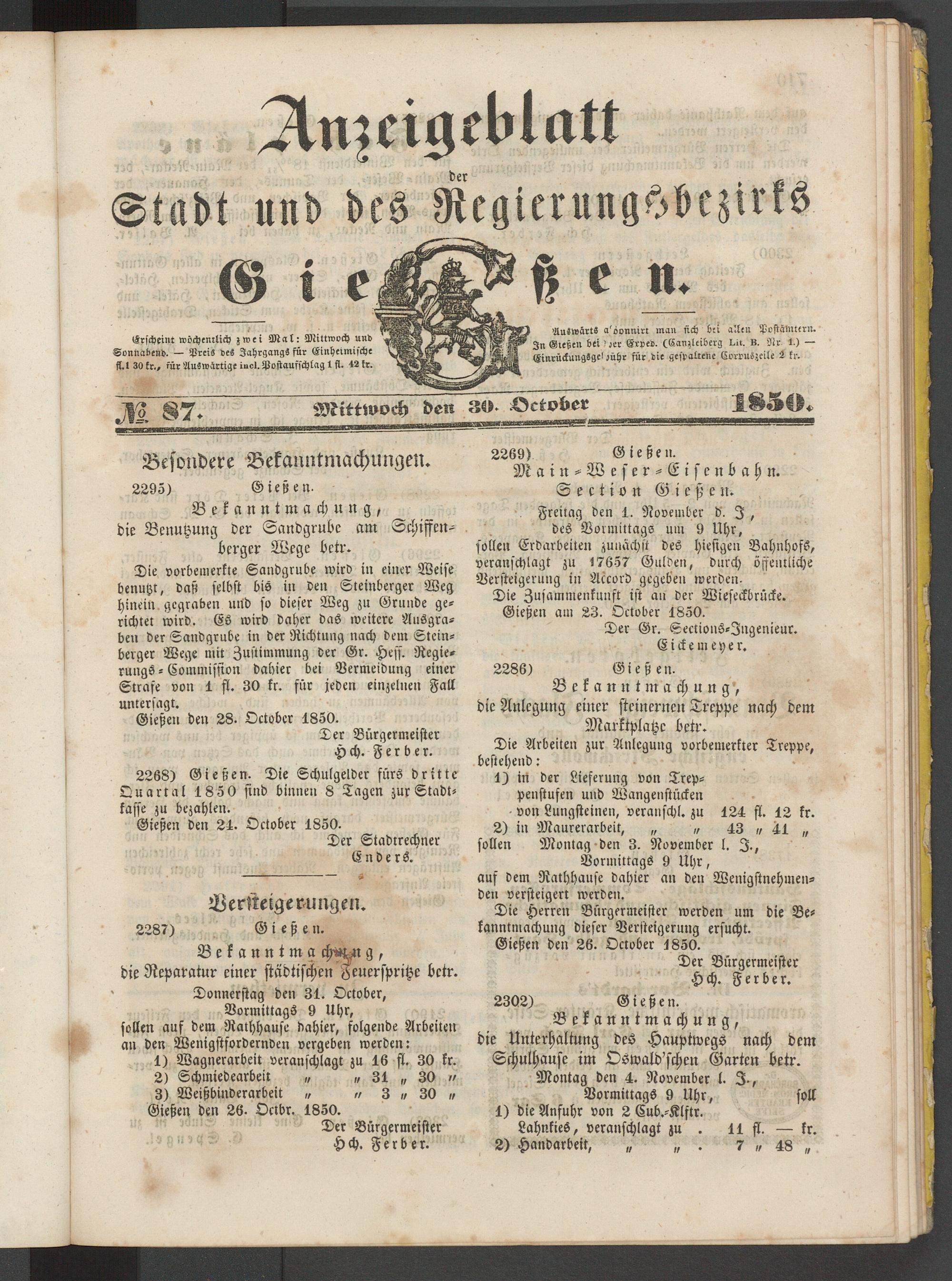 Anzeigeblatt für die Provinzialhauptstadt Gießen. 1840-1867