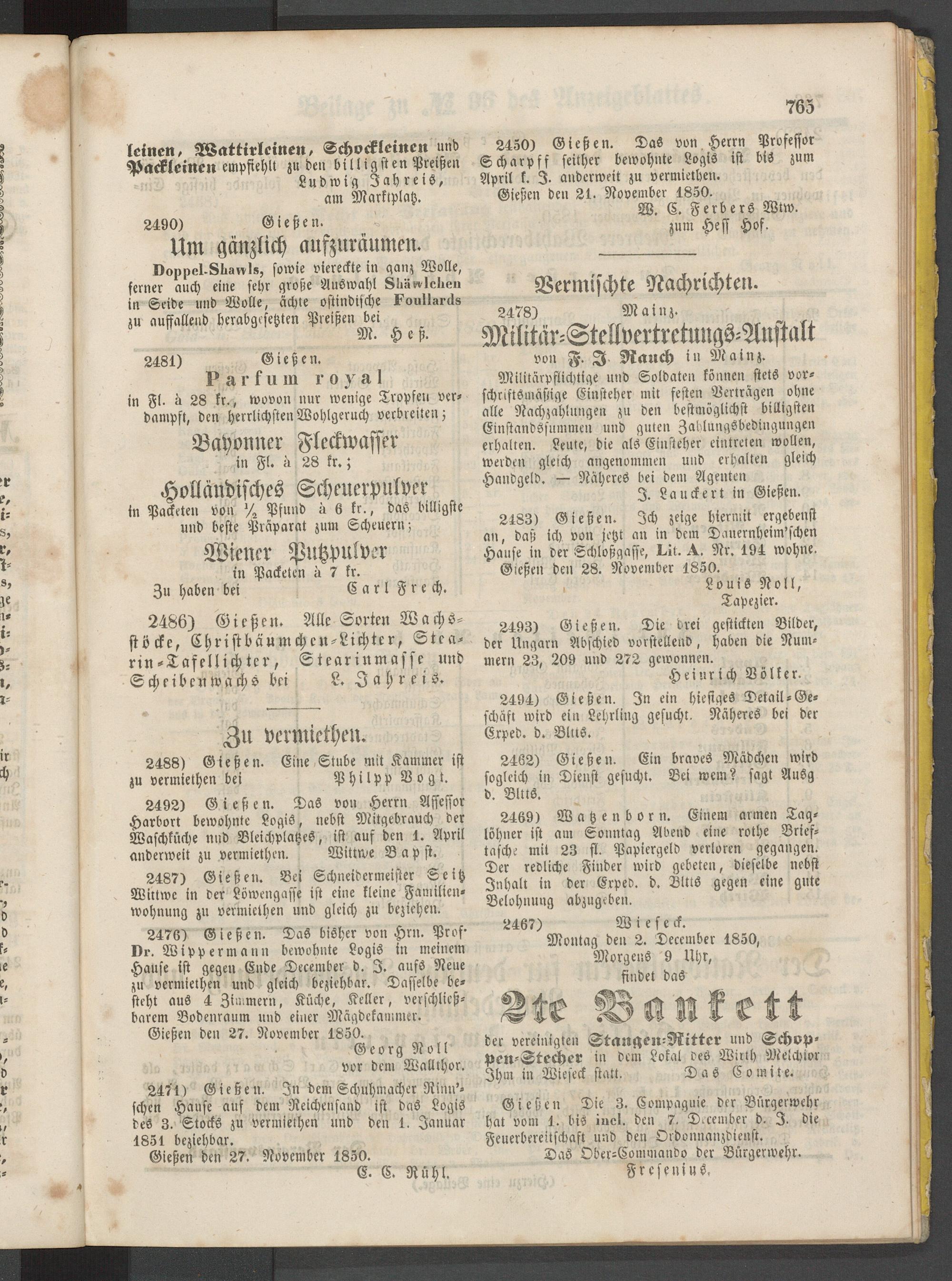 Anzeigeblatt für die Provinzialhauptstadt Gießen. 1840-1867