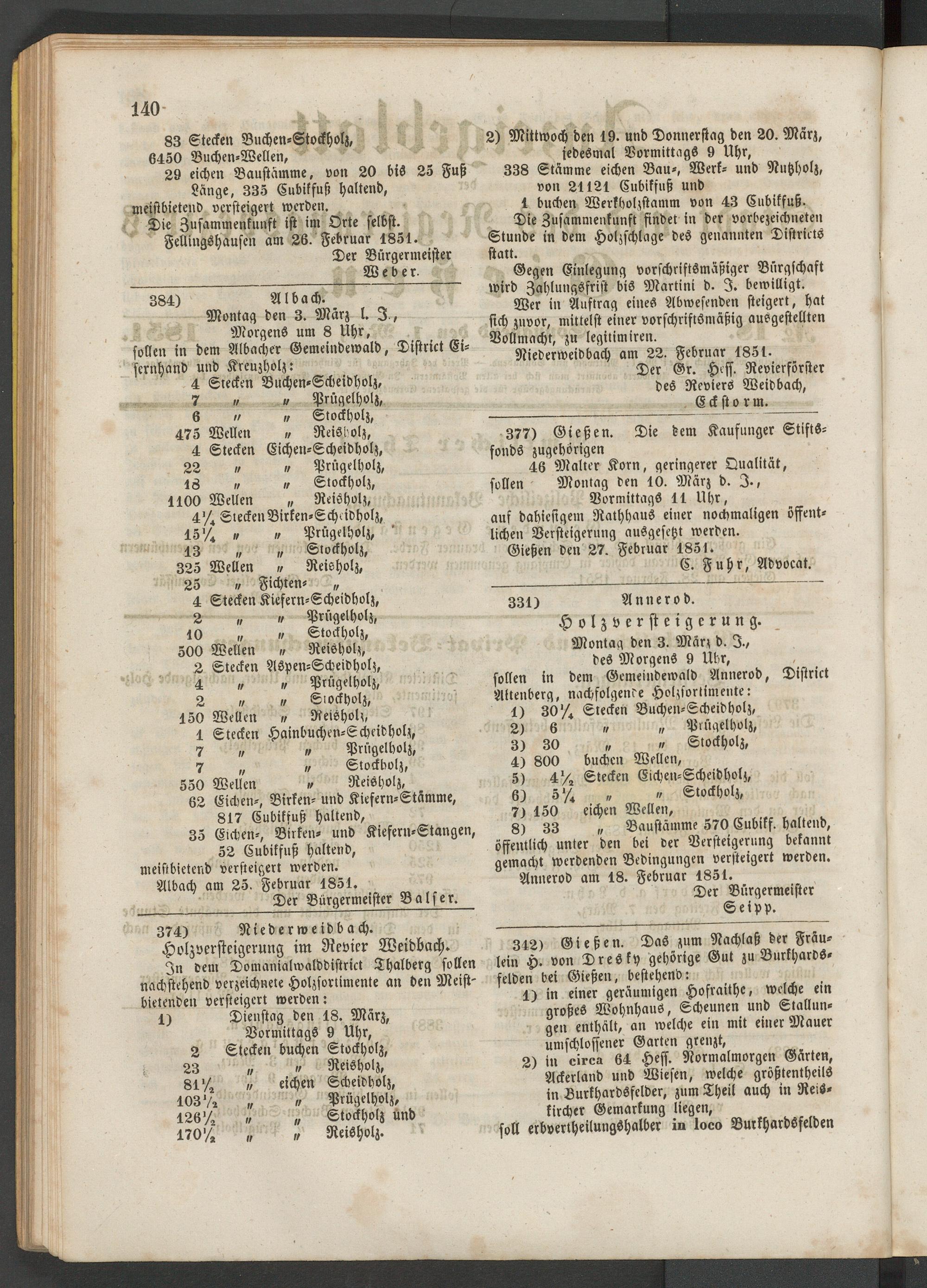 Anzeigeblatt für die Provinzialhauptstadt Gießen. 1840-1867