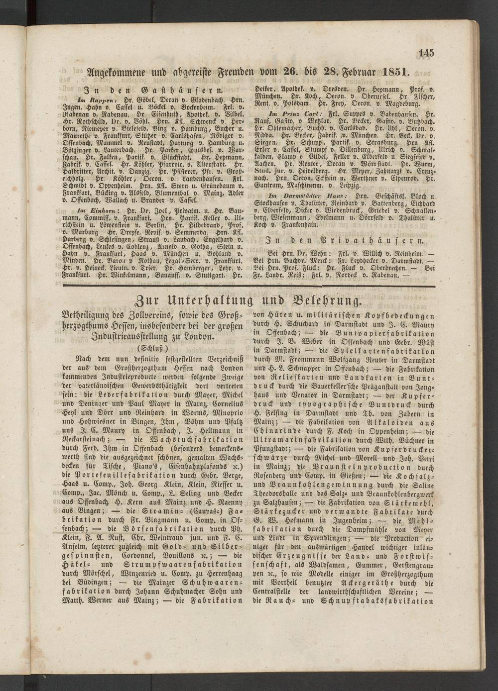 Anzeigeblatt für die Provinzialhauptstadt Gießen. 1840-1867
