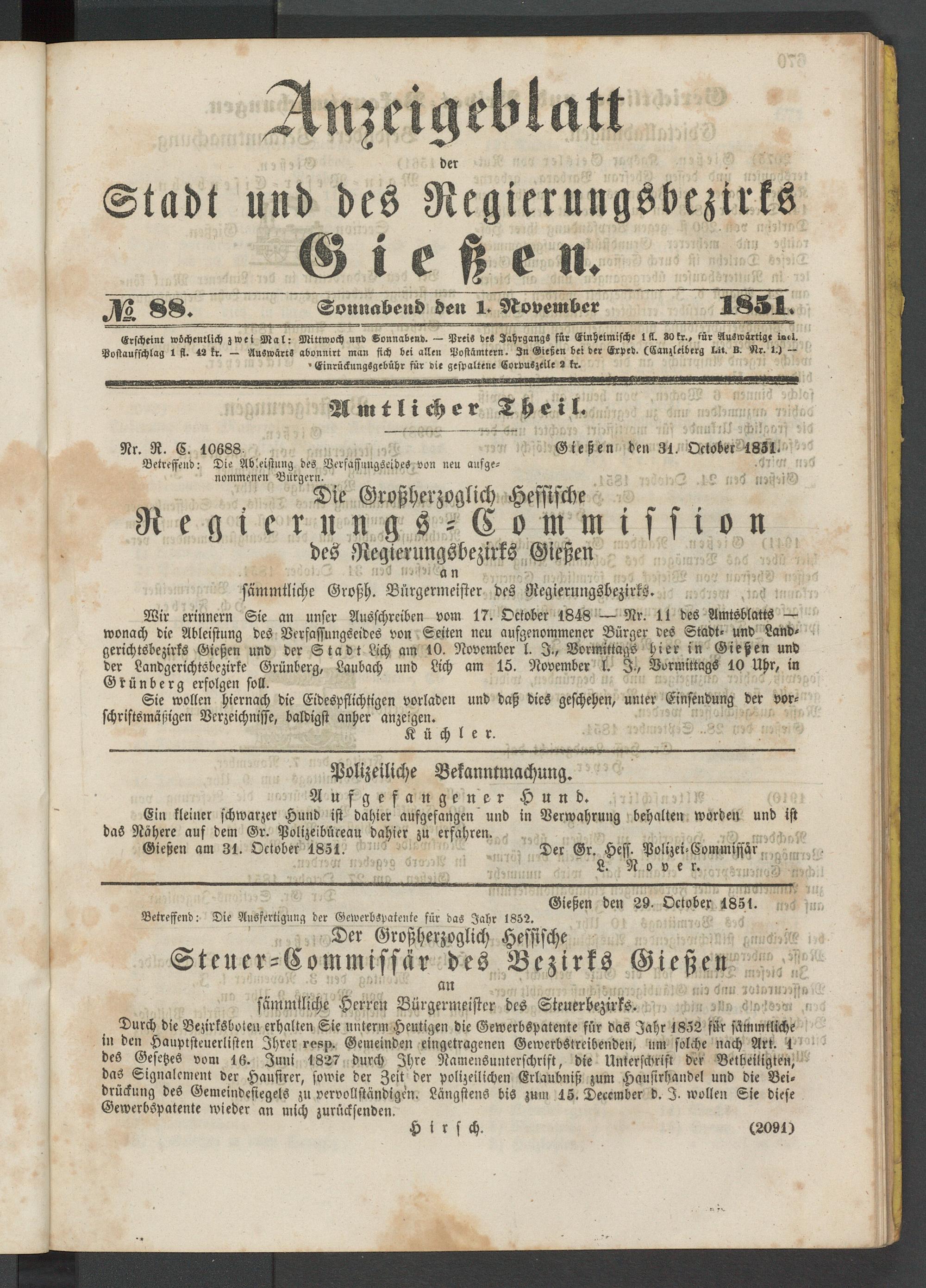 Anzeigeblatt für die Provinzialhauptstadt Gießen. 1840-1867