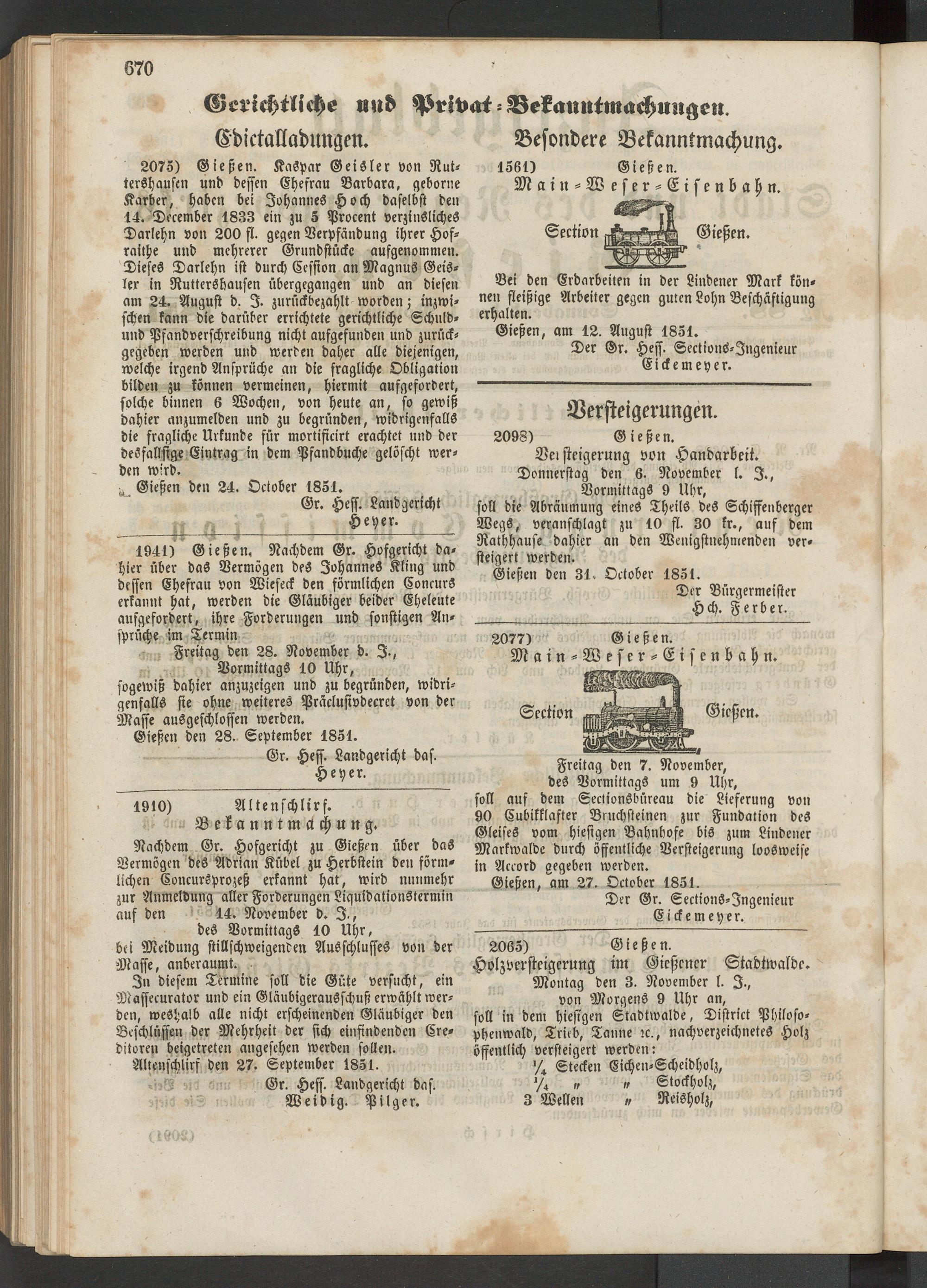 Anzeigeblatt für die Provinzialhauptstadt Gießen. 1840-1867
