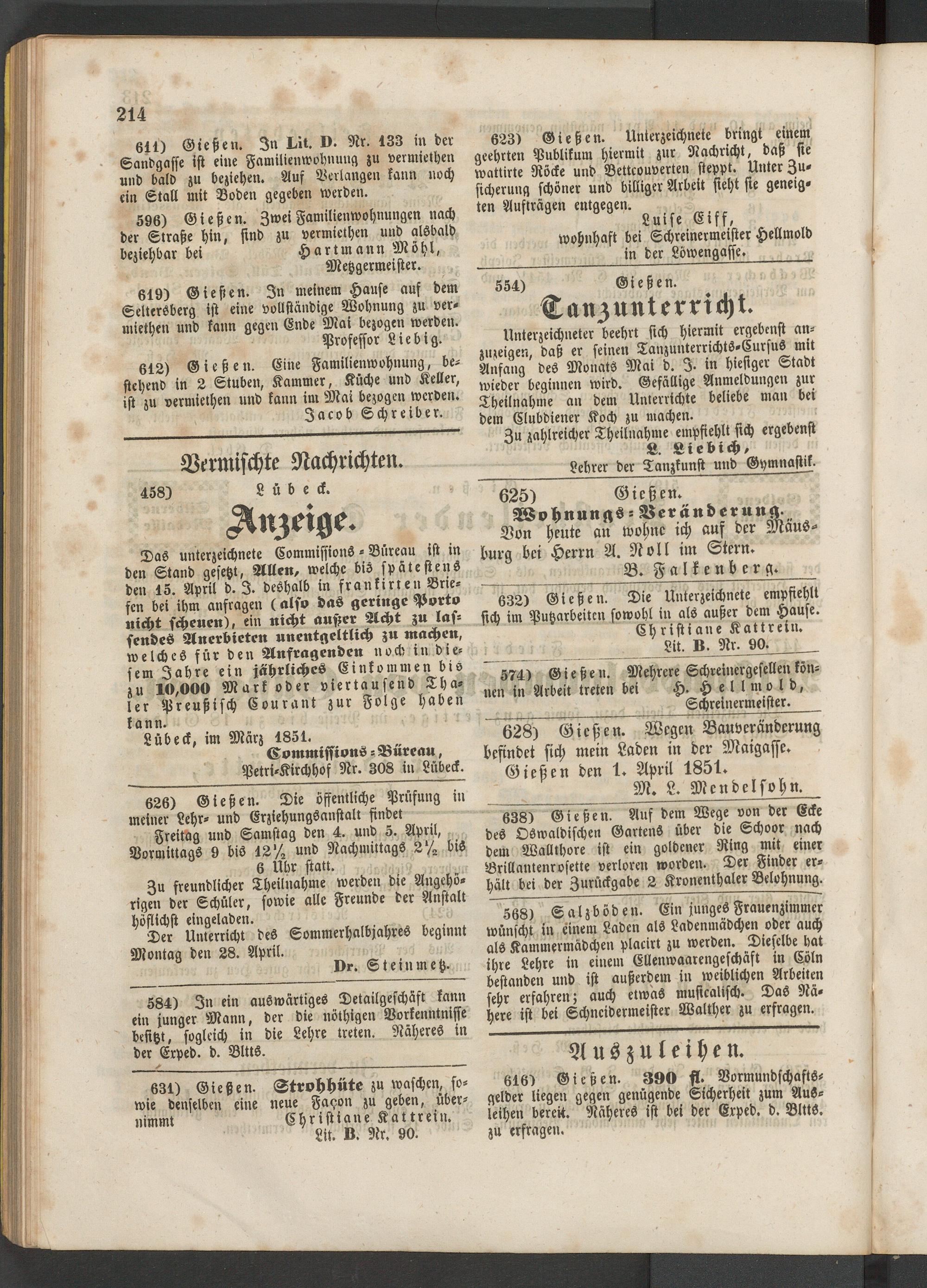Anzeigeblatt für die Provinzialhauptstadt Gießen. 1840-1867