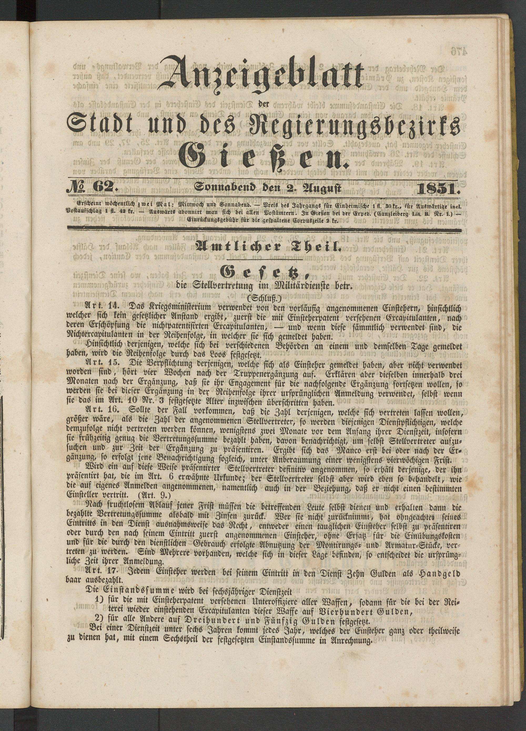 Anzeigeblatt für die Provinzialhauptstadt Gießen. 1840-1867