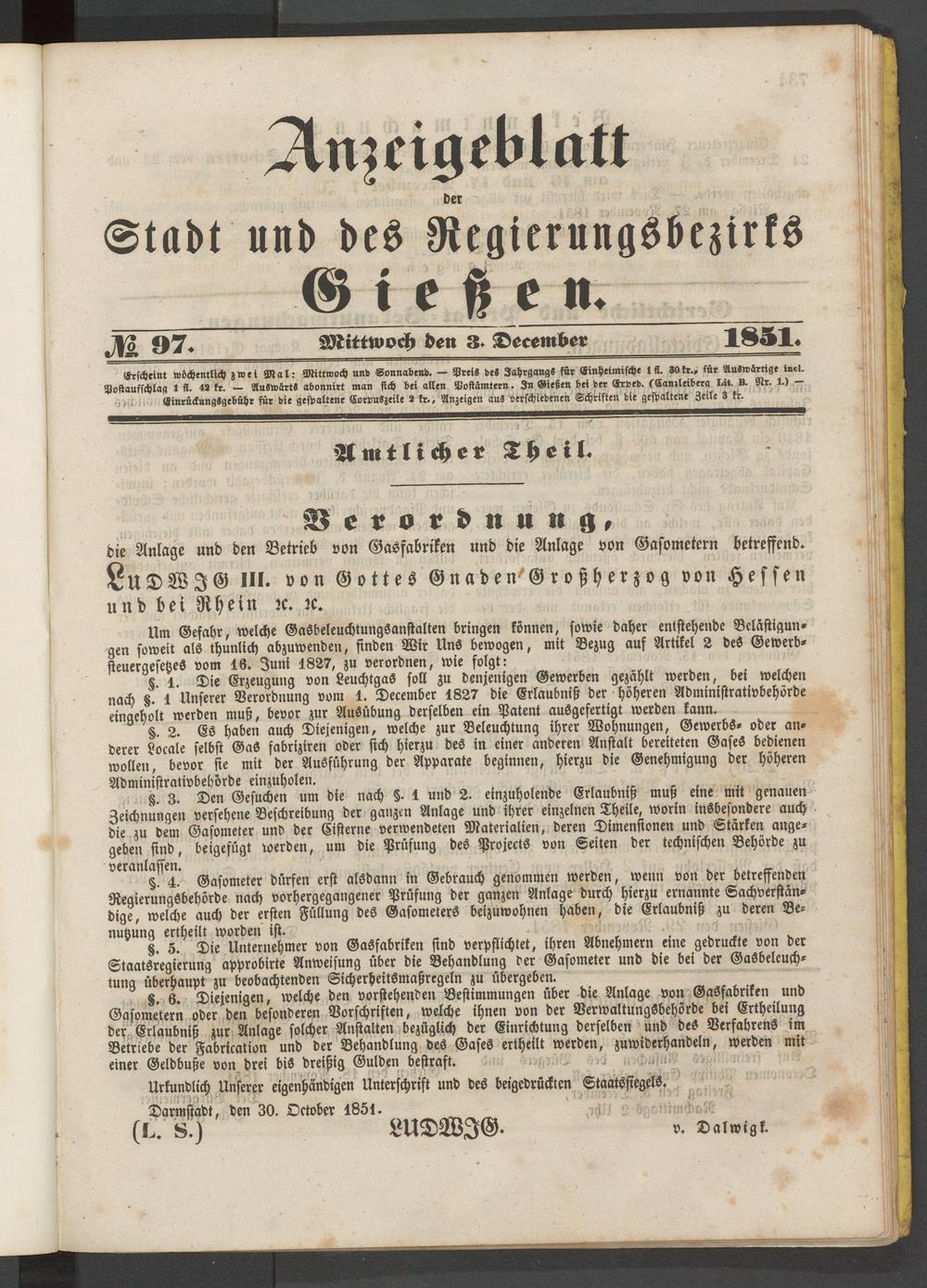 Anzeigeblatt für die Provinzialhauptstadt Gießen. 1840-1867