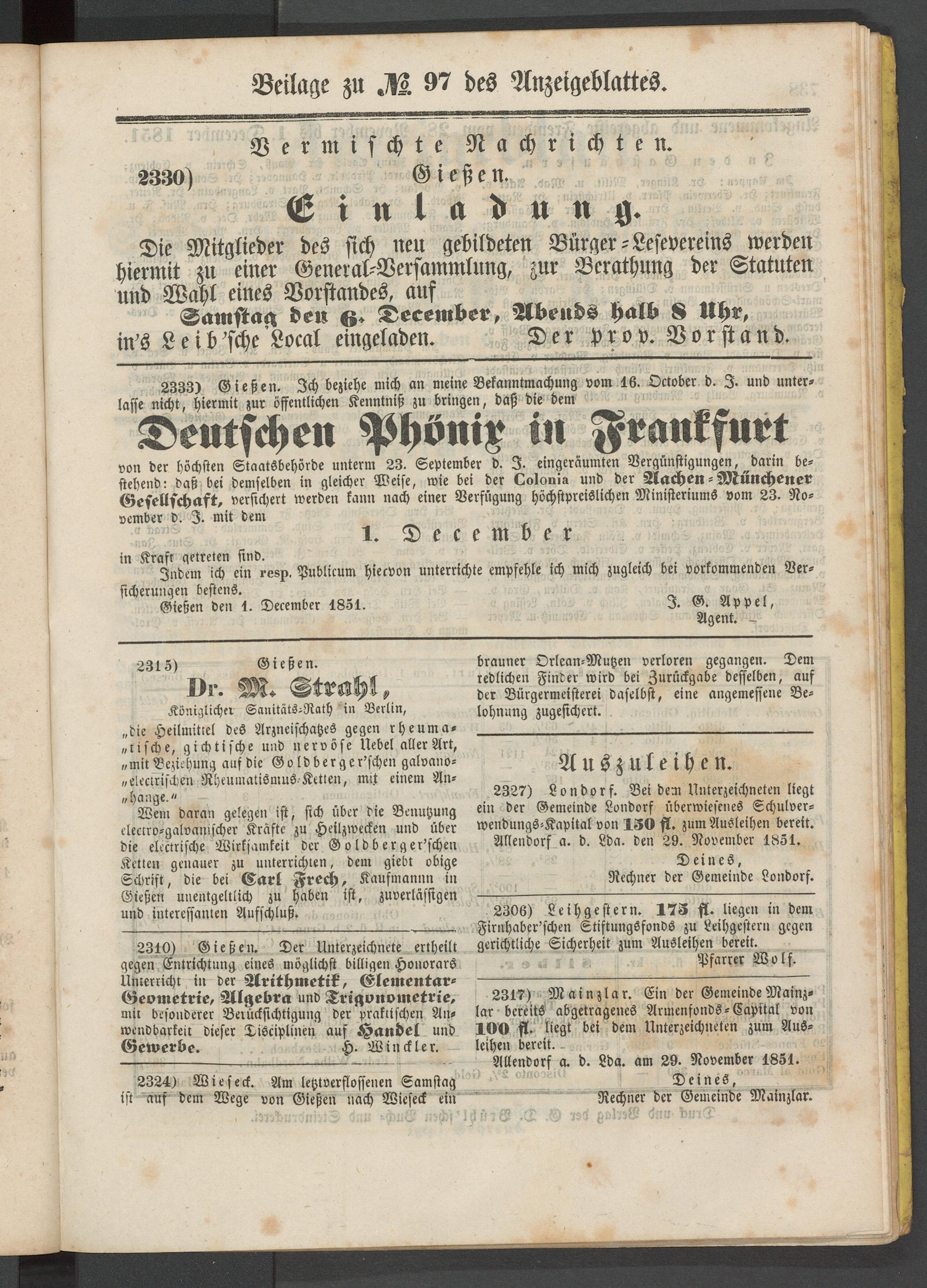 Anzeigeblatt für die Provinzialhauptstadt Gießen. 1840-1867