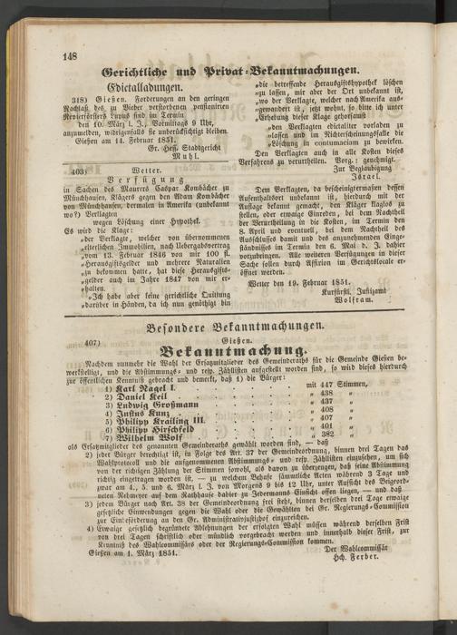 Anzeigeblatt für die Provinzialhauptstadt Gießen. 1840-1867