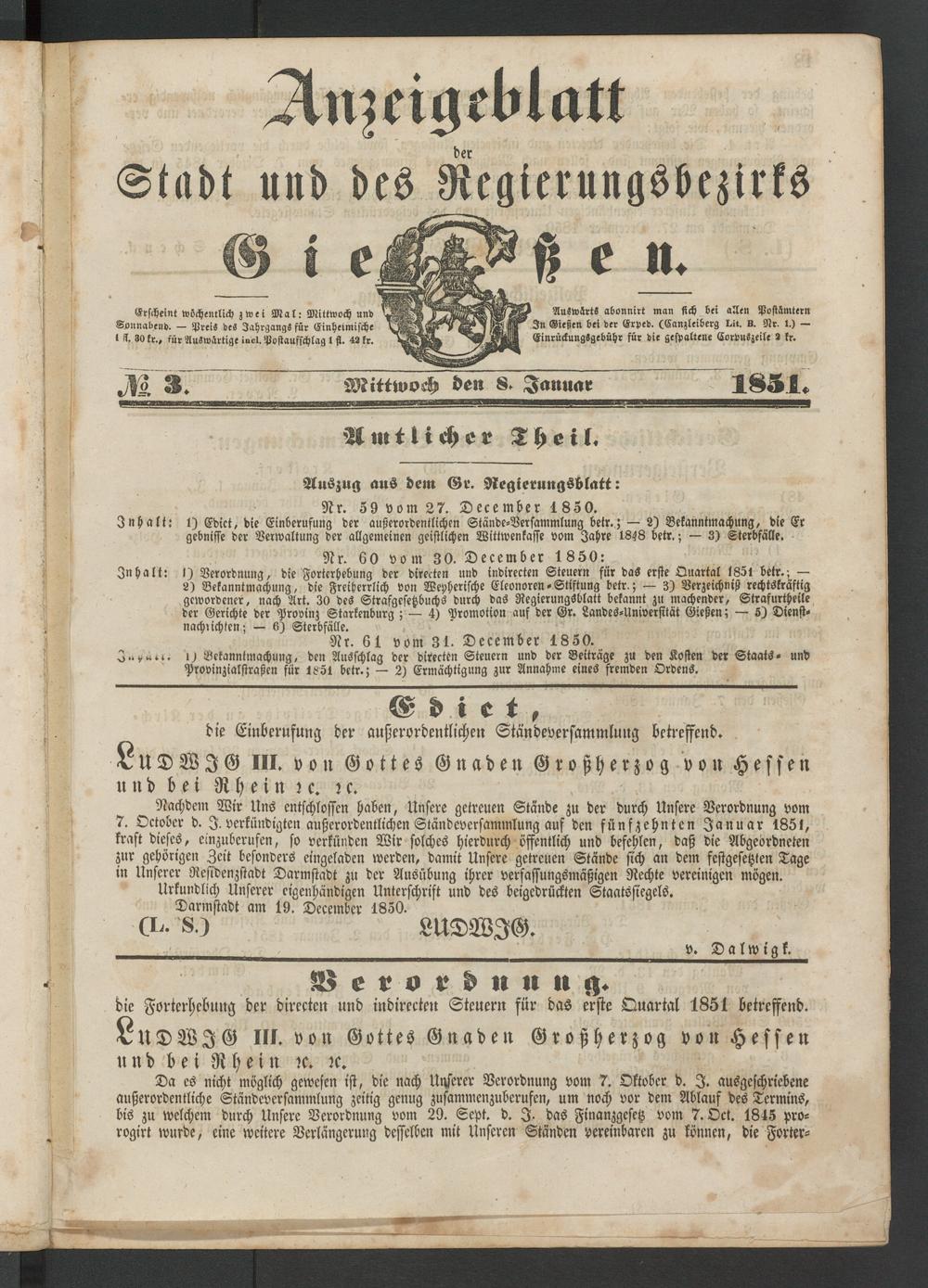 Anzeigeblatt für die Provinzialhauptstadt Gießen. 1840-1867