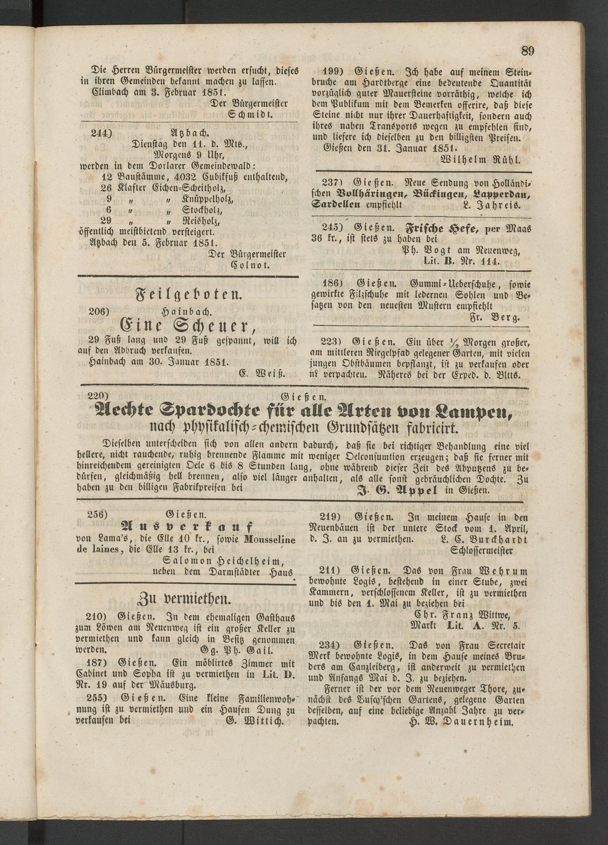 Anzeigeblatt für die Provinzialhauptstadt Gießen. 1840-1867