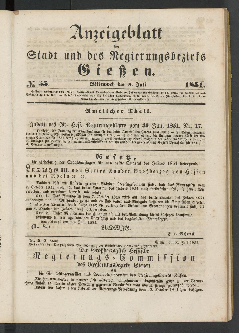Anzeigeblatt für die Provinzialhauptstadt Gießen. 1840-1867