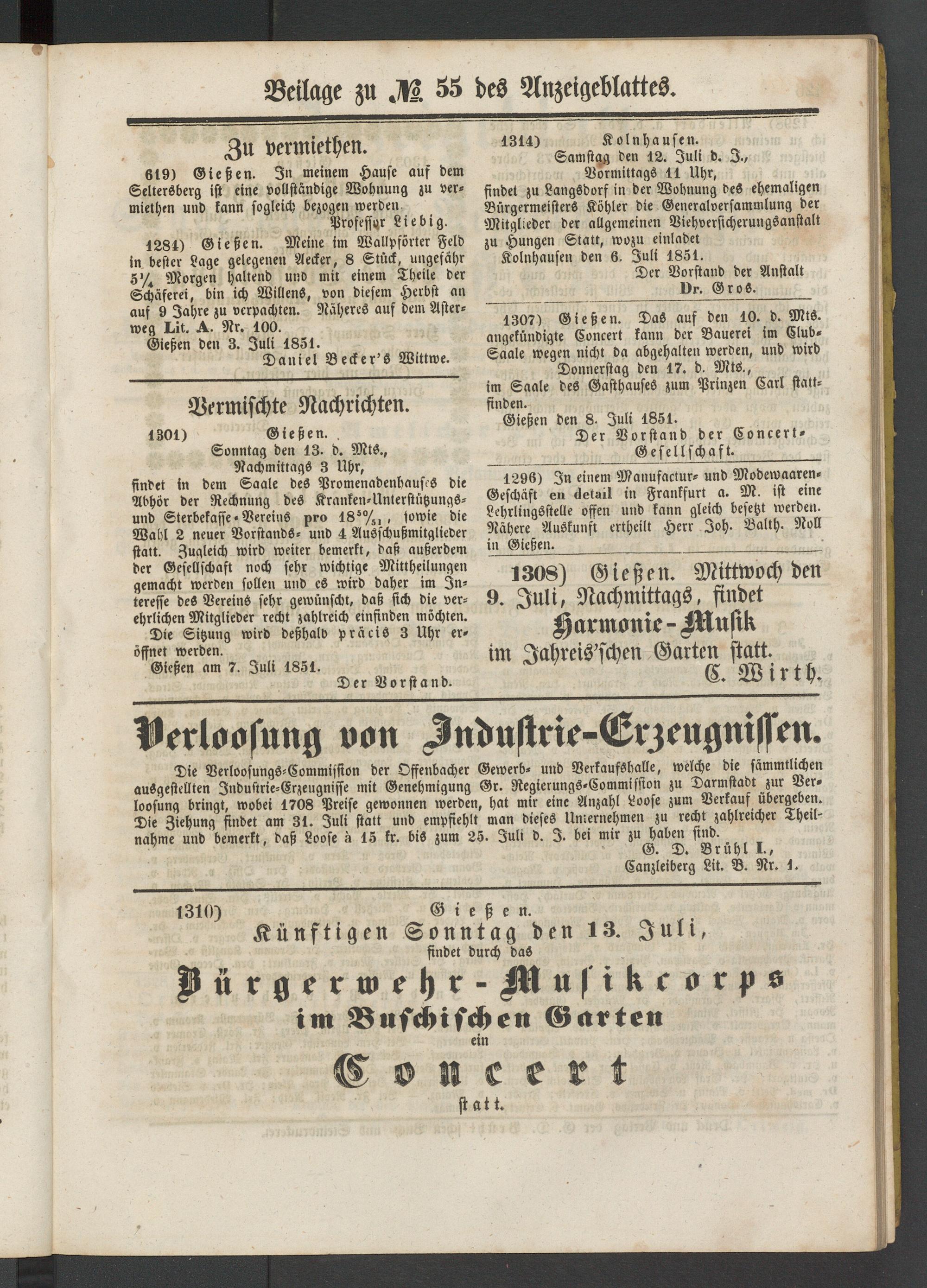 Anzeigeblatt für die Provinzialhauptstadt Gießen. 1840-1867
