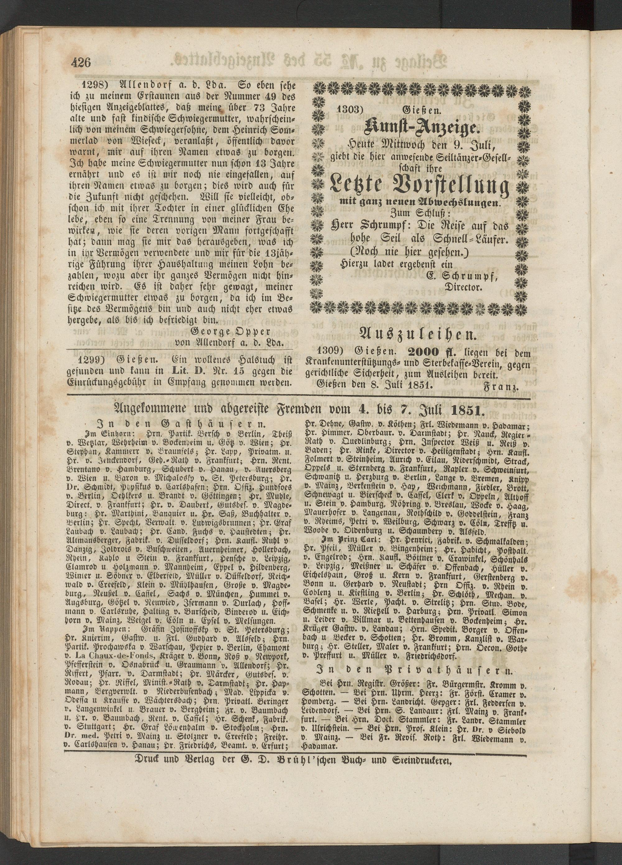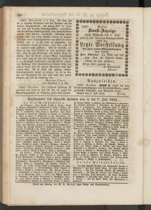 Anzeigeblatt für die Provinzialhauptstadt Gießen. 1840-1867