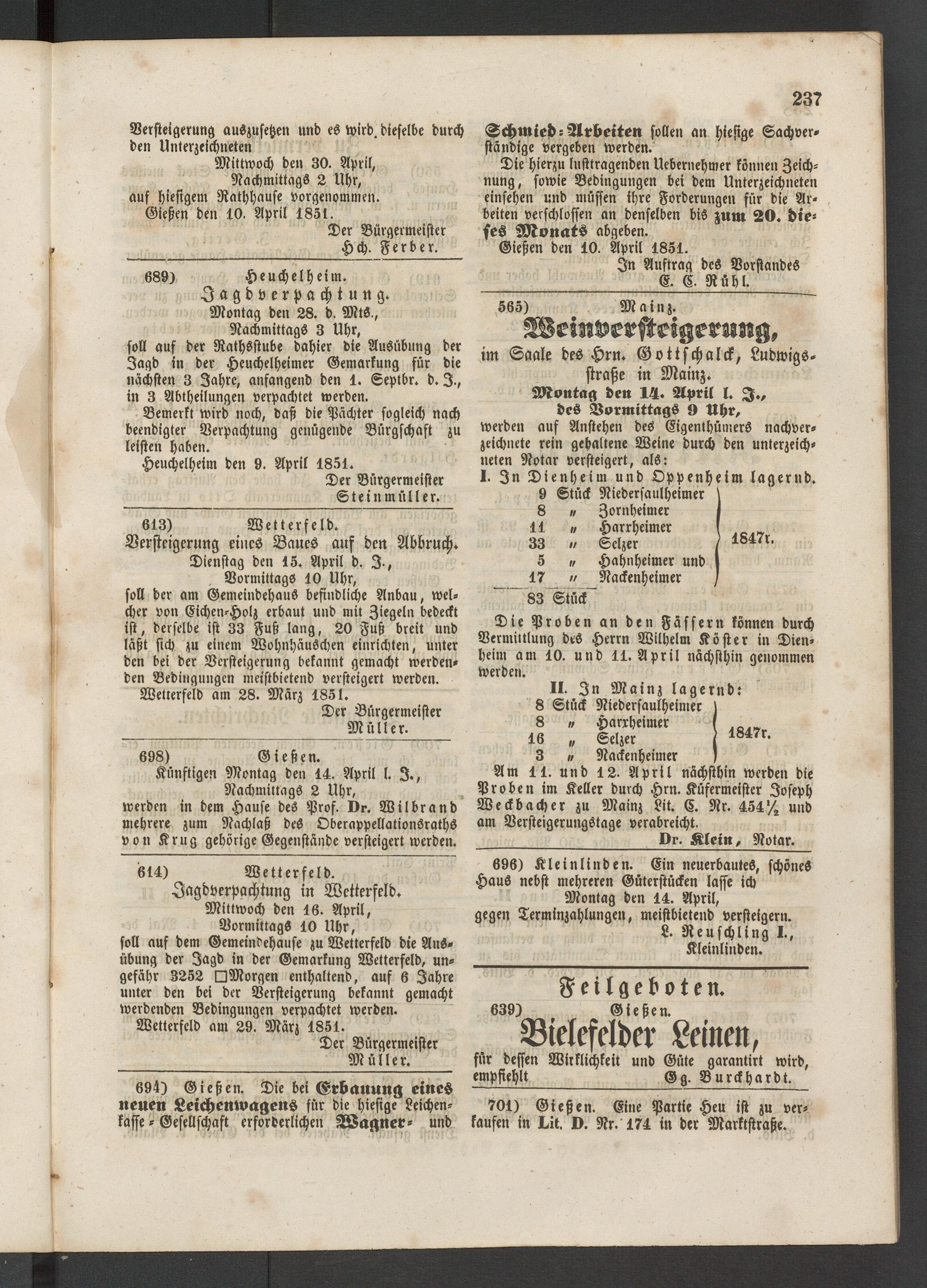 Anzeigeblatt für die Provinzialhauptstadt Gießen. 1840-1867