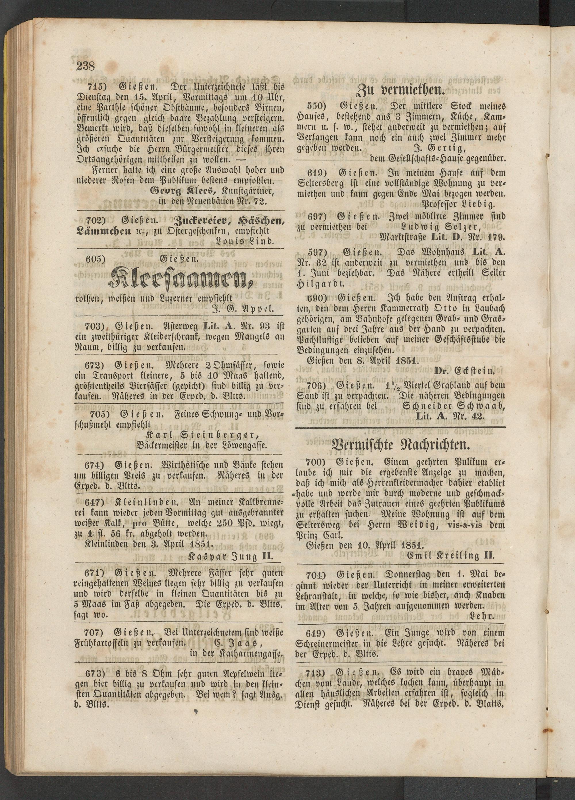 Anzeigeblatt für die Provinzialhauptstadt Gießen. 1840-1867