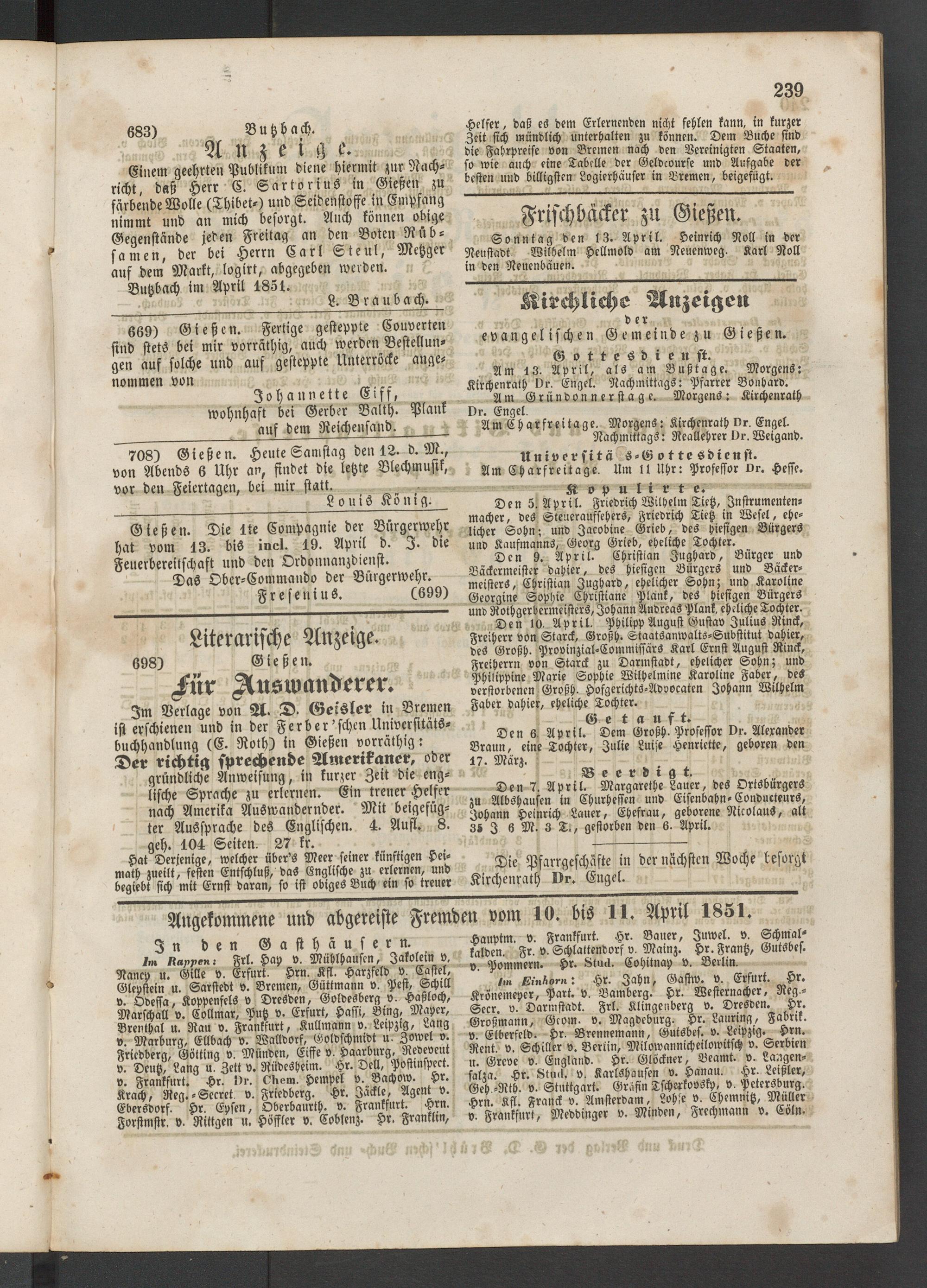 Anzeigeblatt für die Provinzialhauptstadt Gießen. 1840-1867