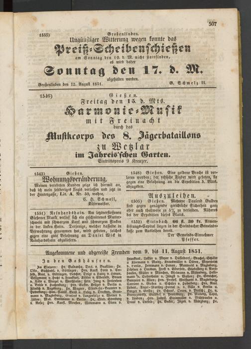 Anzeigeblatt für die Provinzialhauptstadt Gießen. 1840-1867