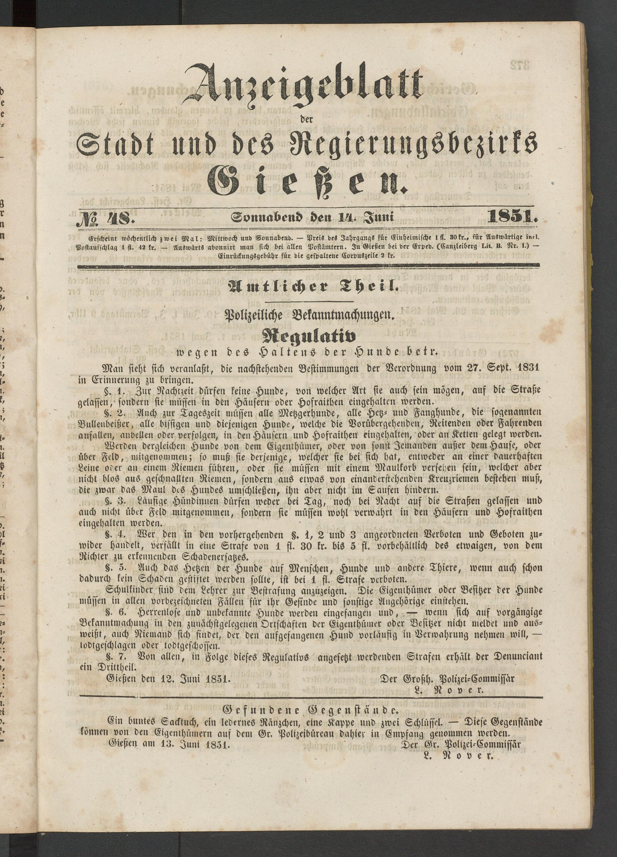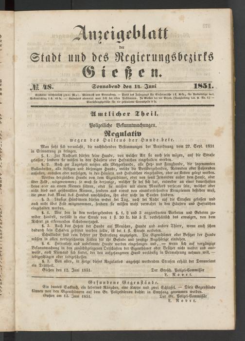 Anzeigeblatt für die Provinzialhauptstadt Gießen. 1840-1867
