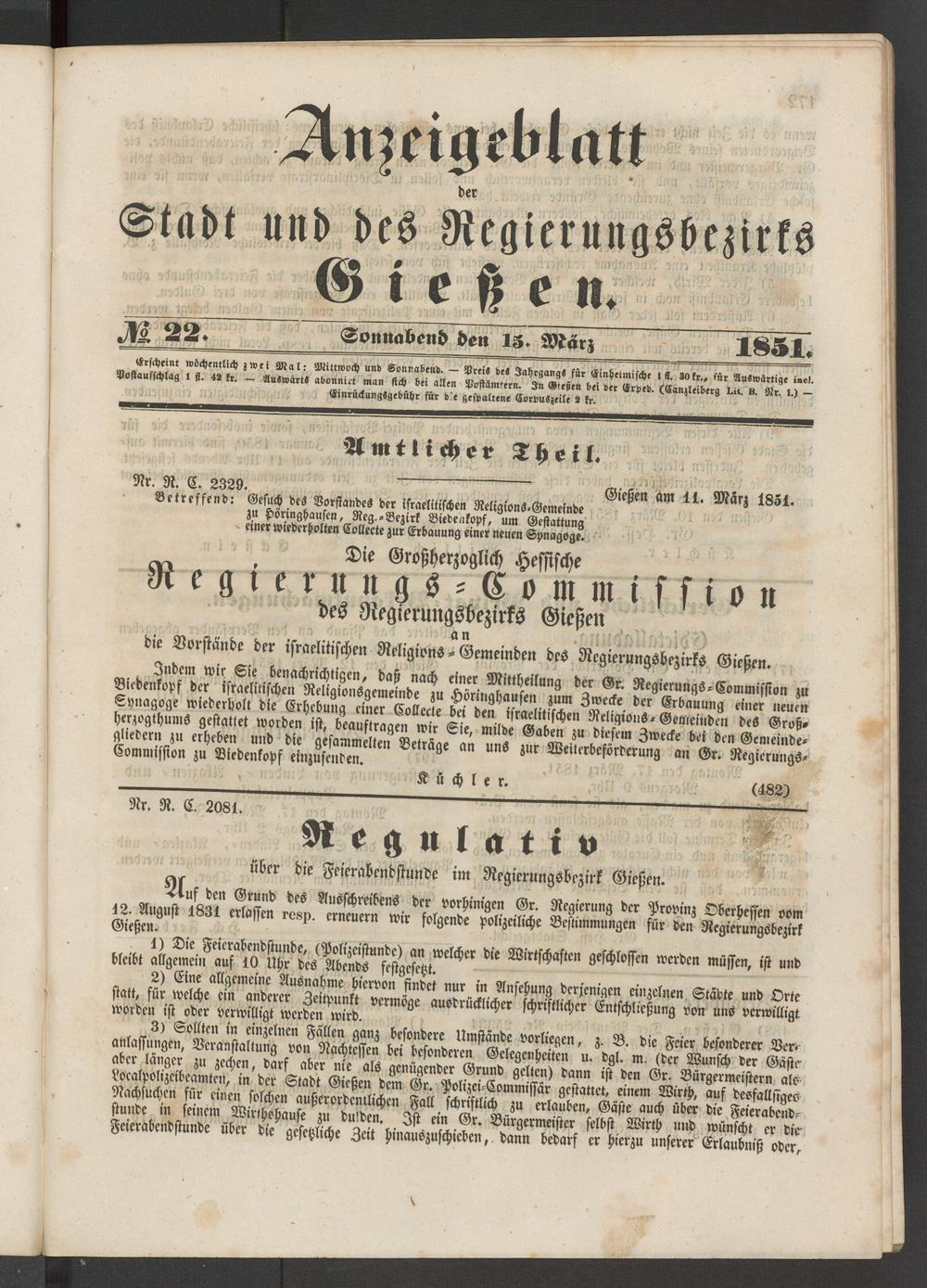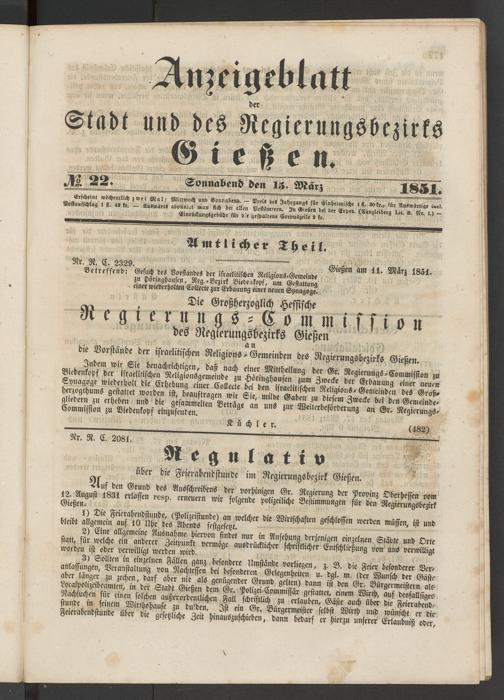 Anzeigeblatt für die Provinzialhauptstadt Gießen. 1840-1867
