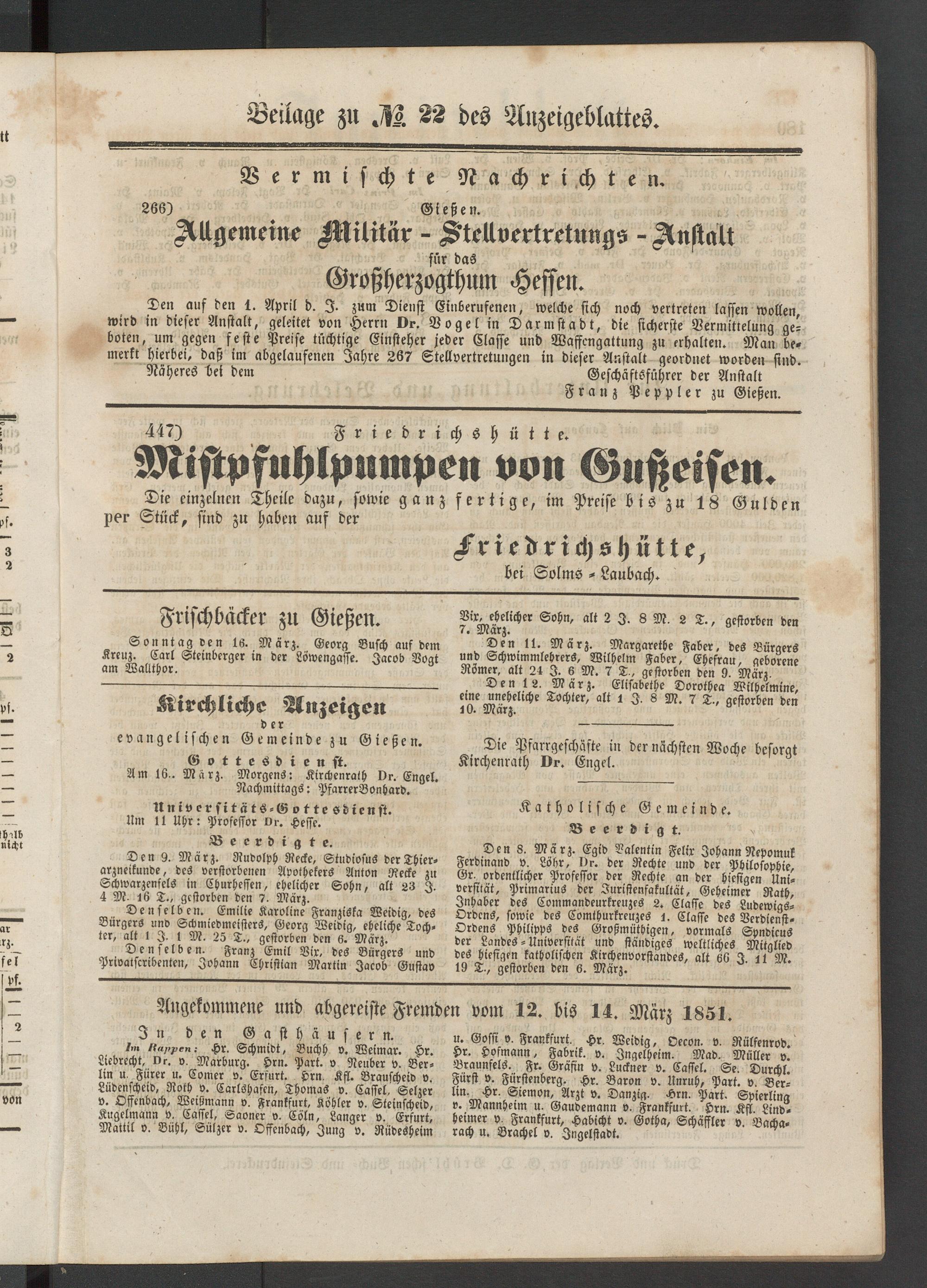 Anzeigeblatt für die Provinzialhauptstadt Gießen. 1840-1867