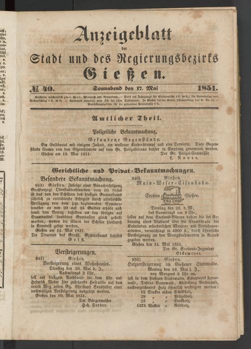 Anzeigeblatt für die Provinzialhauptstadt Gießen. 1840-1867