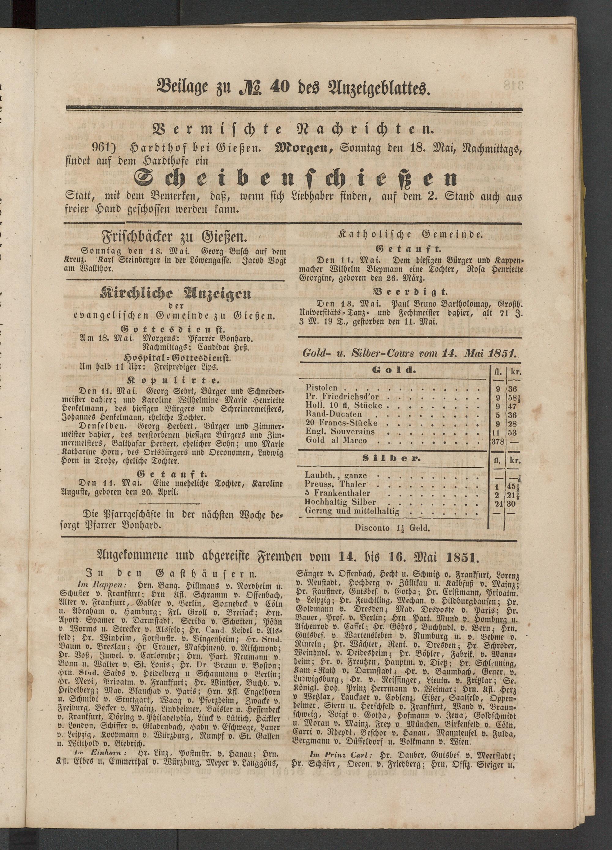 Anzeigeblatt für die Provinzialhauptstadt Gießen. 1840-1867