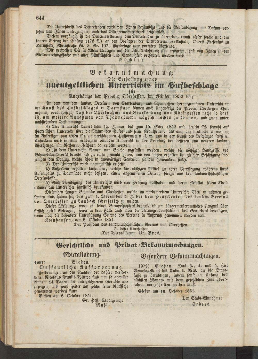 Anzeigeblatt für die Provinzialhauptstadt Gießen. 1840-1867