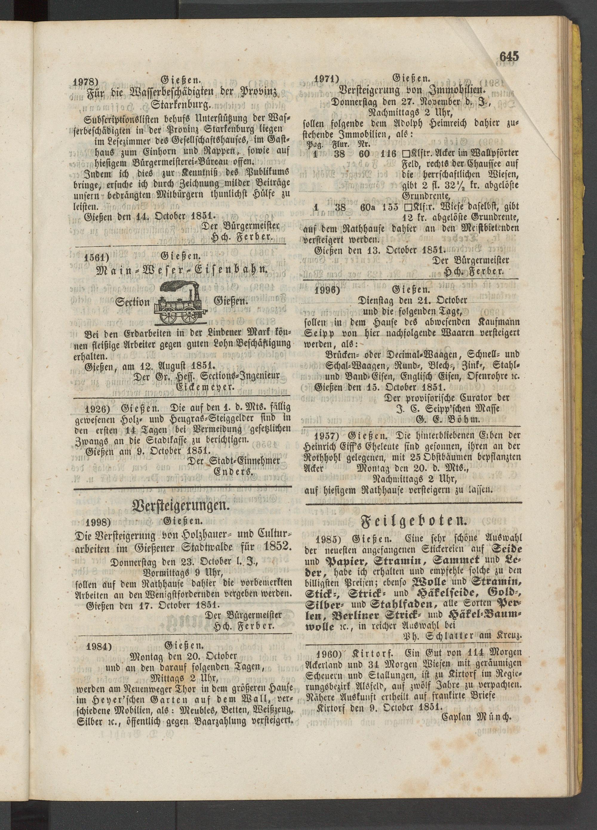 Anzeigeblatt für die Provinzialhauptstadt Gießen. 1840-1867