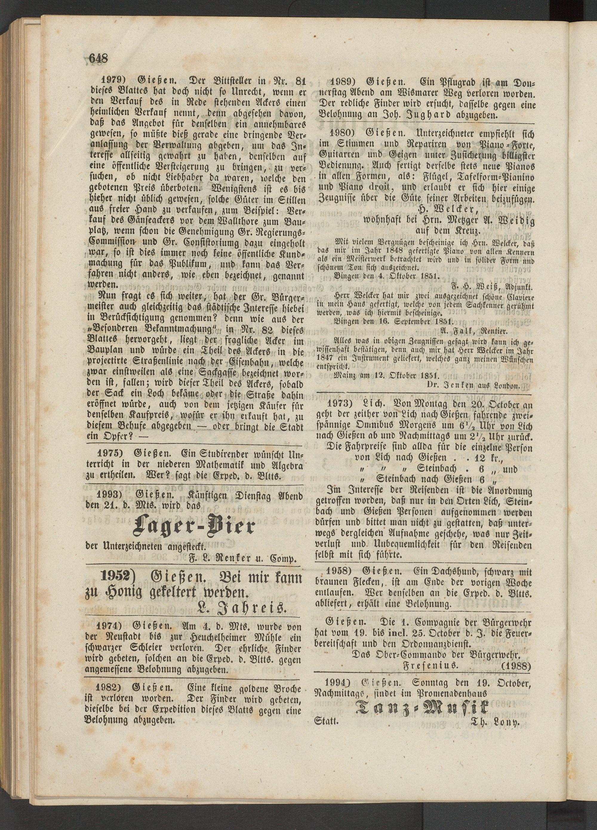 Anzeigeblatt für die Provinzialhauptstadt Gießen. 1840-1867