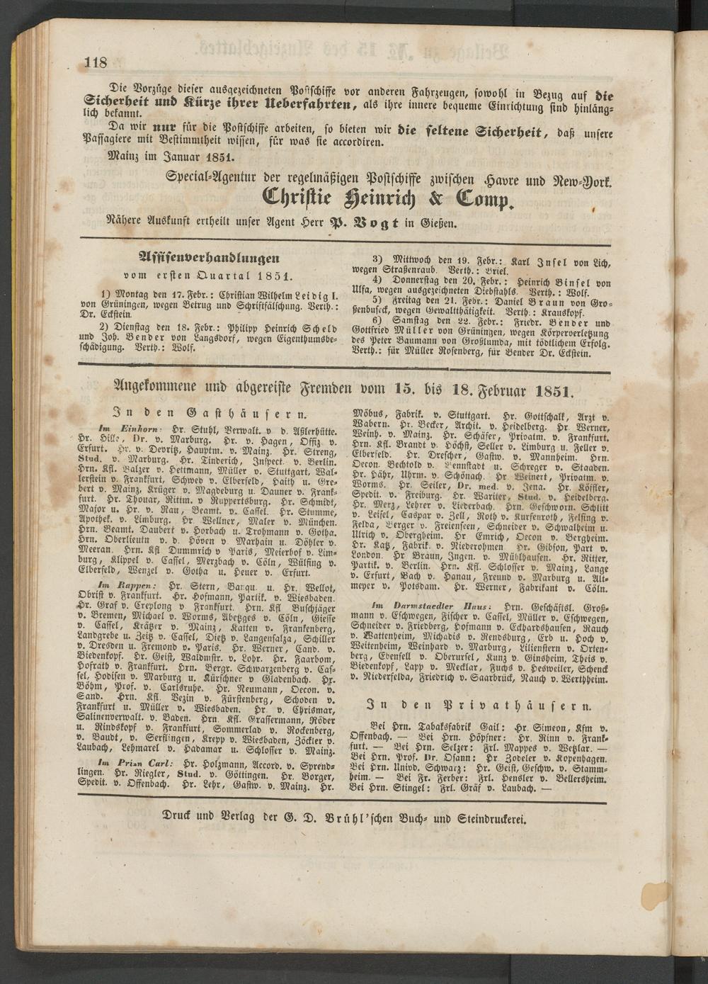 Anzeigeblatt für die Provinzialhauptstadt Gießen. 1840-1867