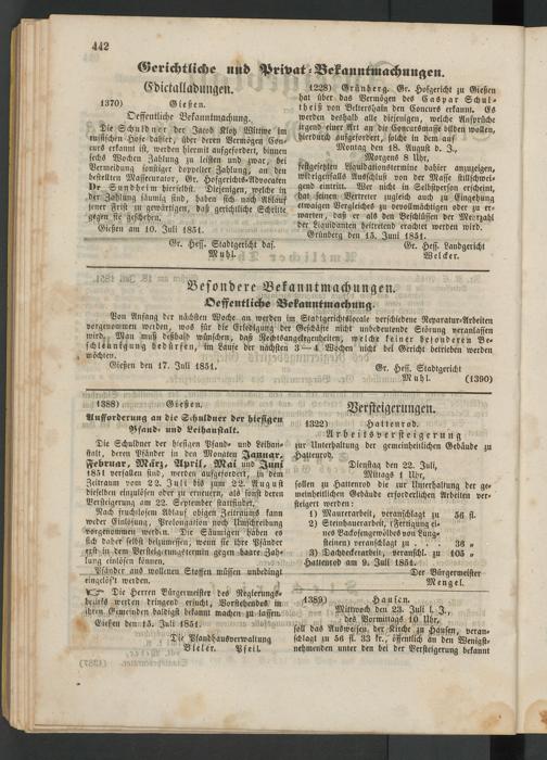 Anzeigeblatt für die Provinzialhauptstadt Gießen. 1840-1867