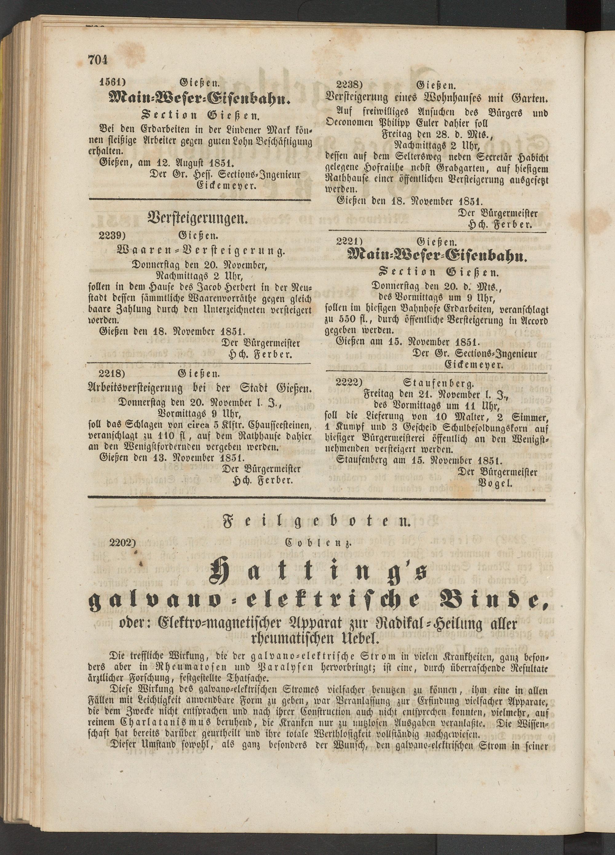 Anzeigeblatt für die Provinzialhauptstadt Gießen. 1840-1867