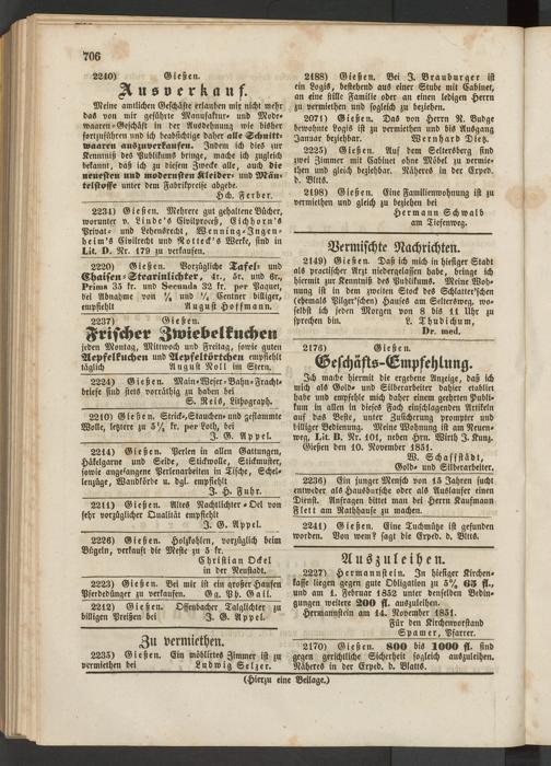 Anzeigeblatt für die Provinzialhauptstadt Gießen. 1840-1867