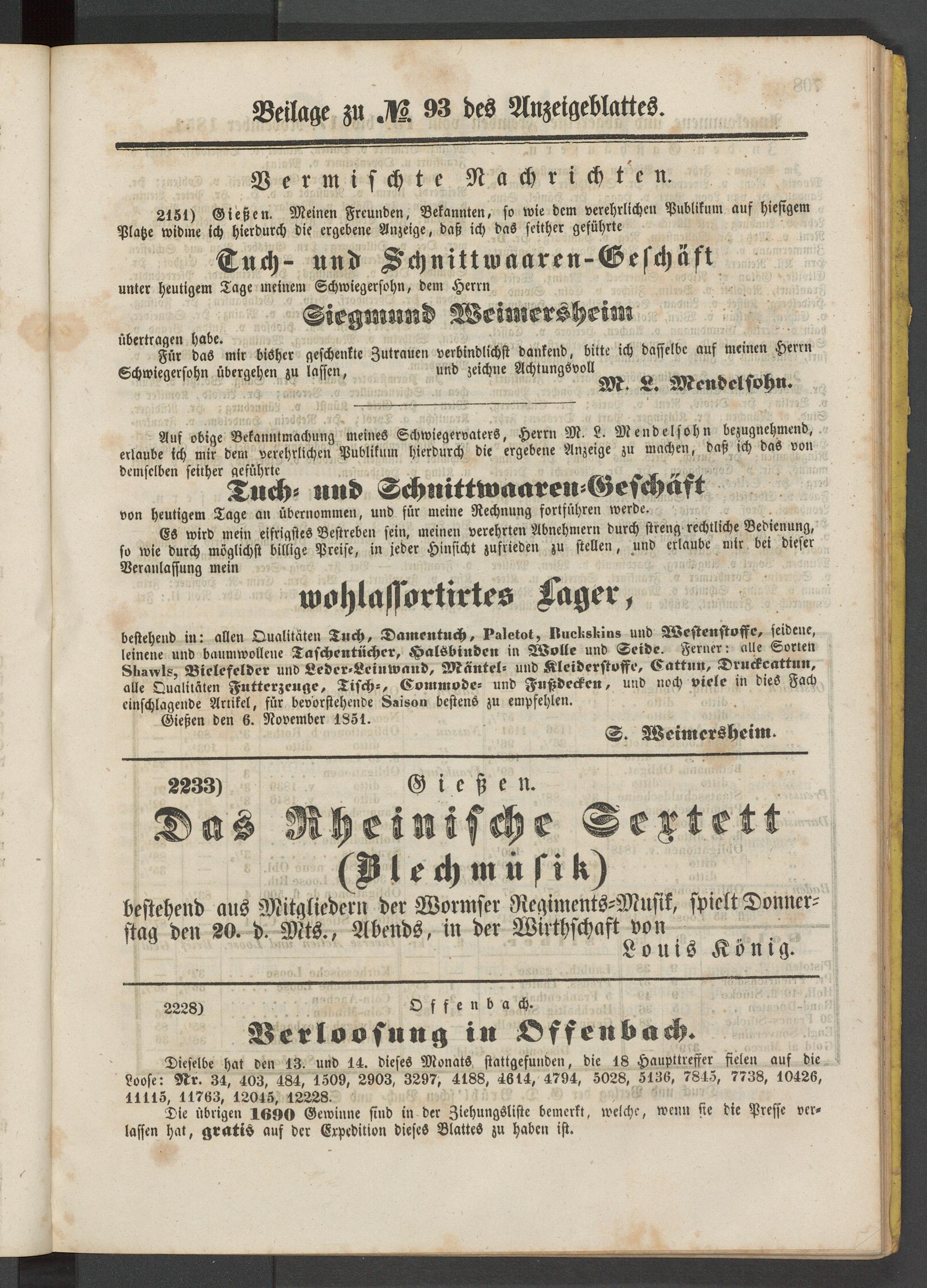 Anzeigeblatt für die Provinzialhauptstadt Gießen. 1840-1867