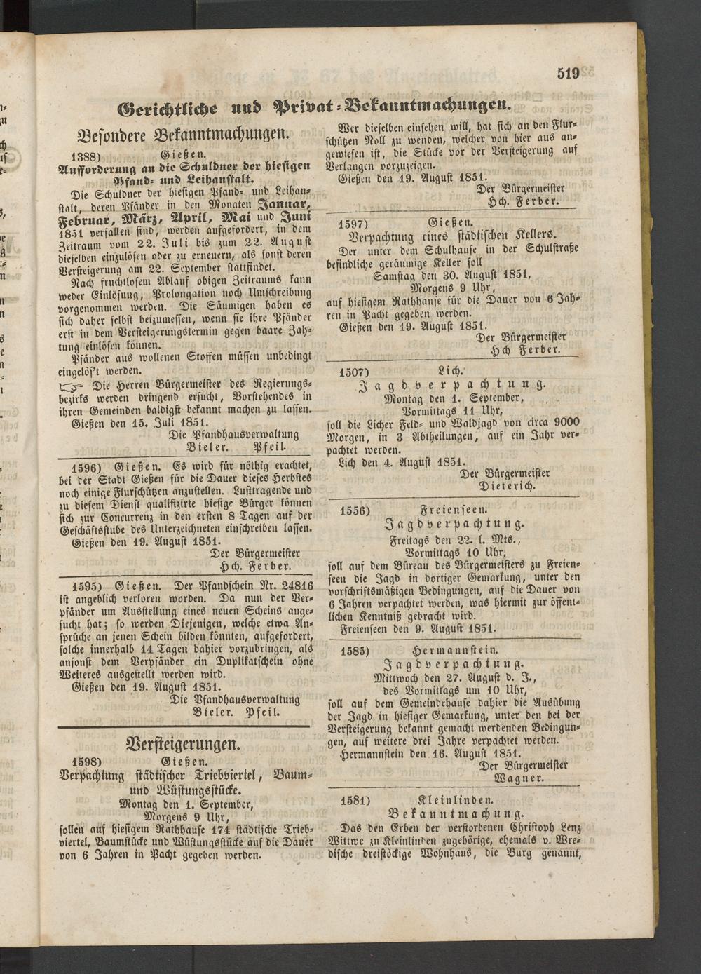 Anzeigeblatt für die Provinzialhauptstadt Gießen. 1840-1867