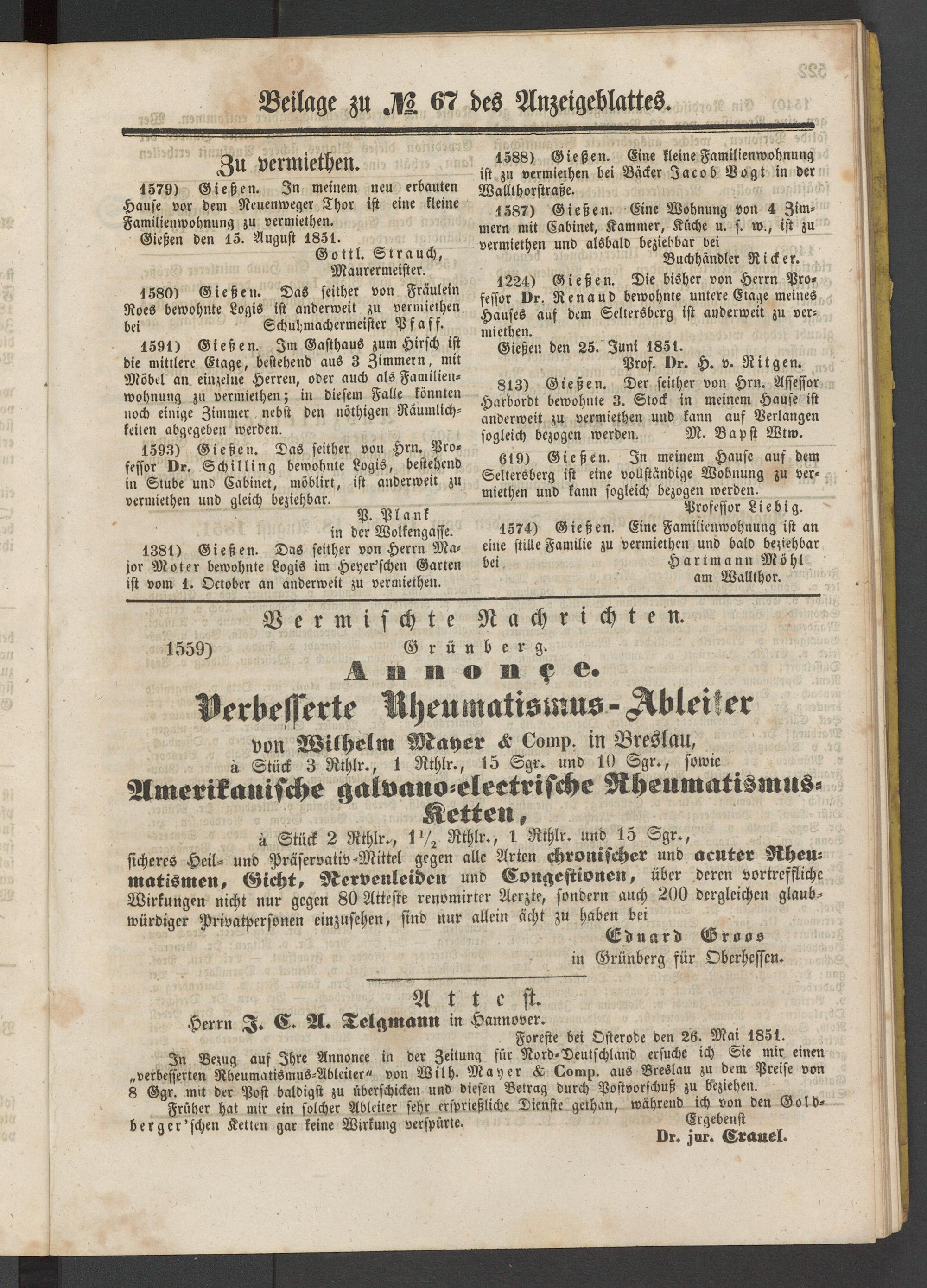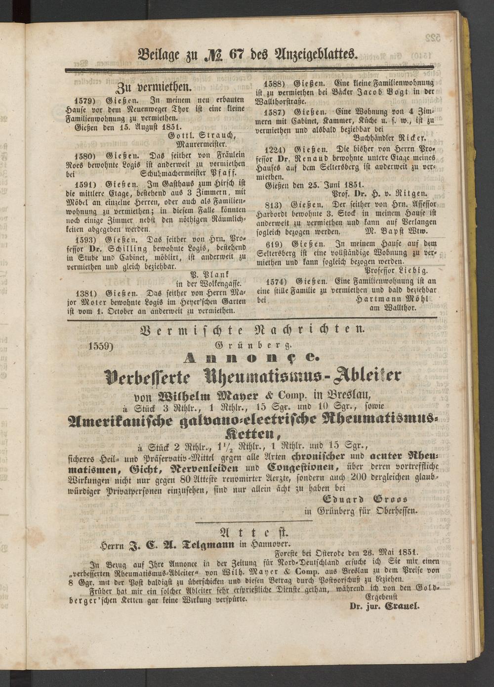 Anzeigeblatt für die Provinzialhauptstadt Gießen. 1840-1867