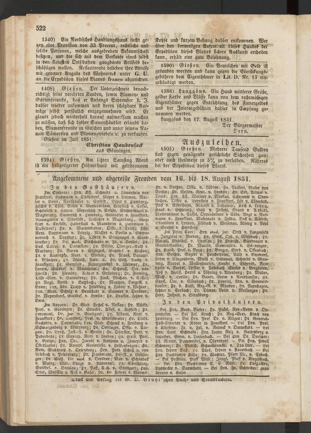 Anzeigeblatt für die Provinzialhauptstadt Gießen. 1840-1867