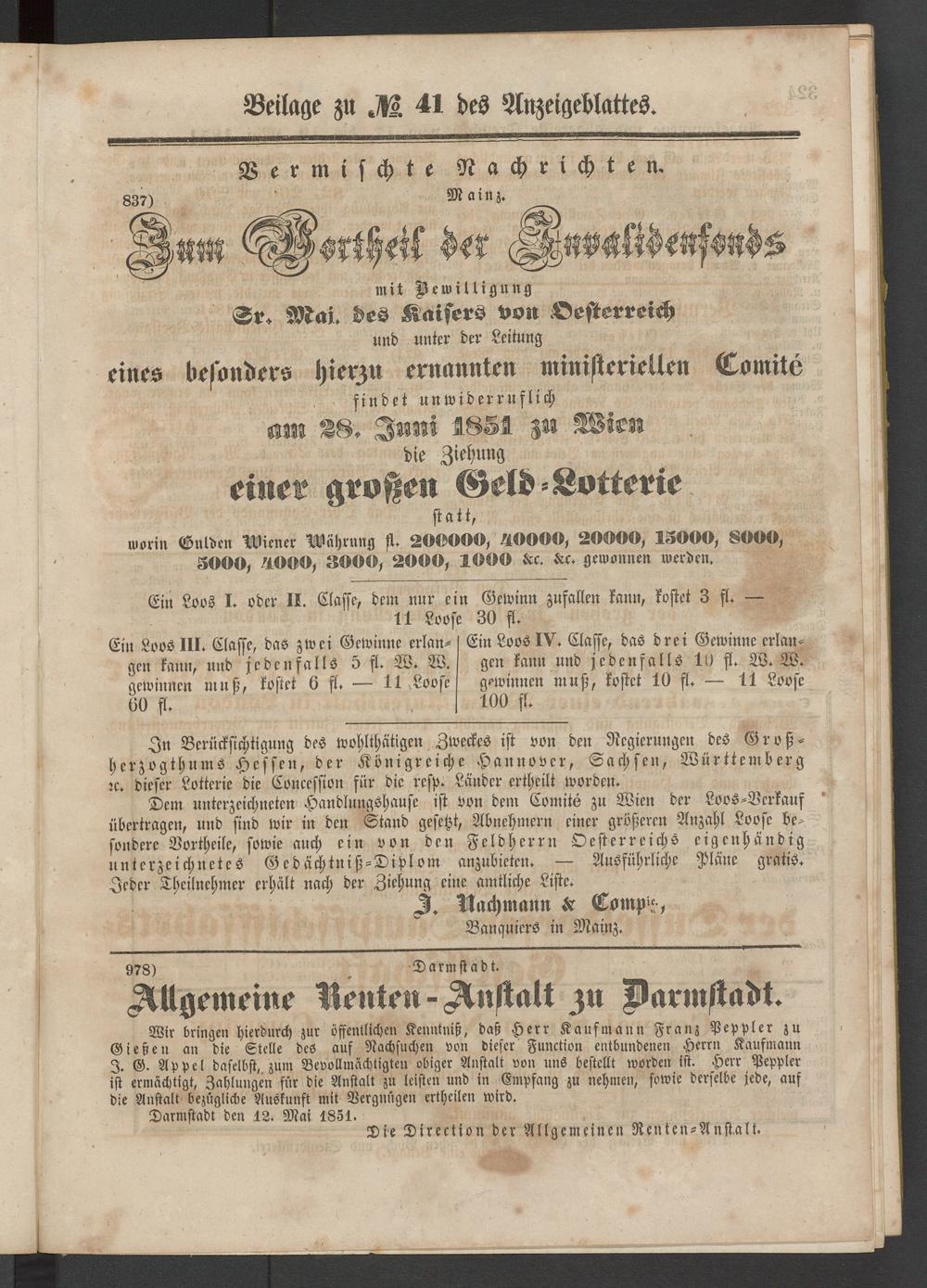 Anzeigeblatt für die Provinzialhauptstadt Gießen. 1840-1867