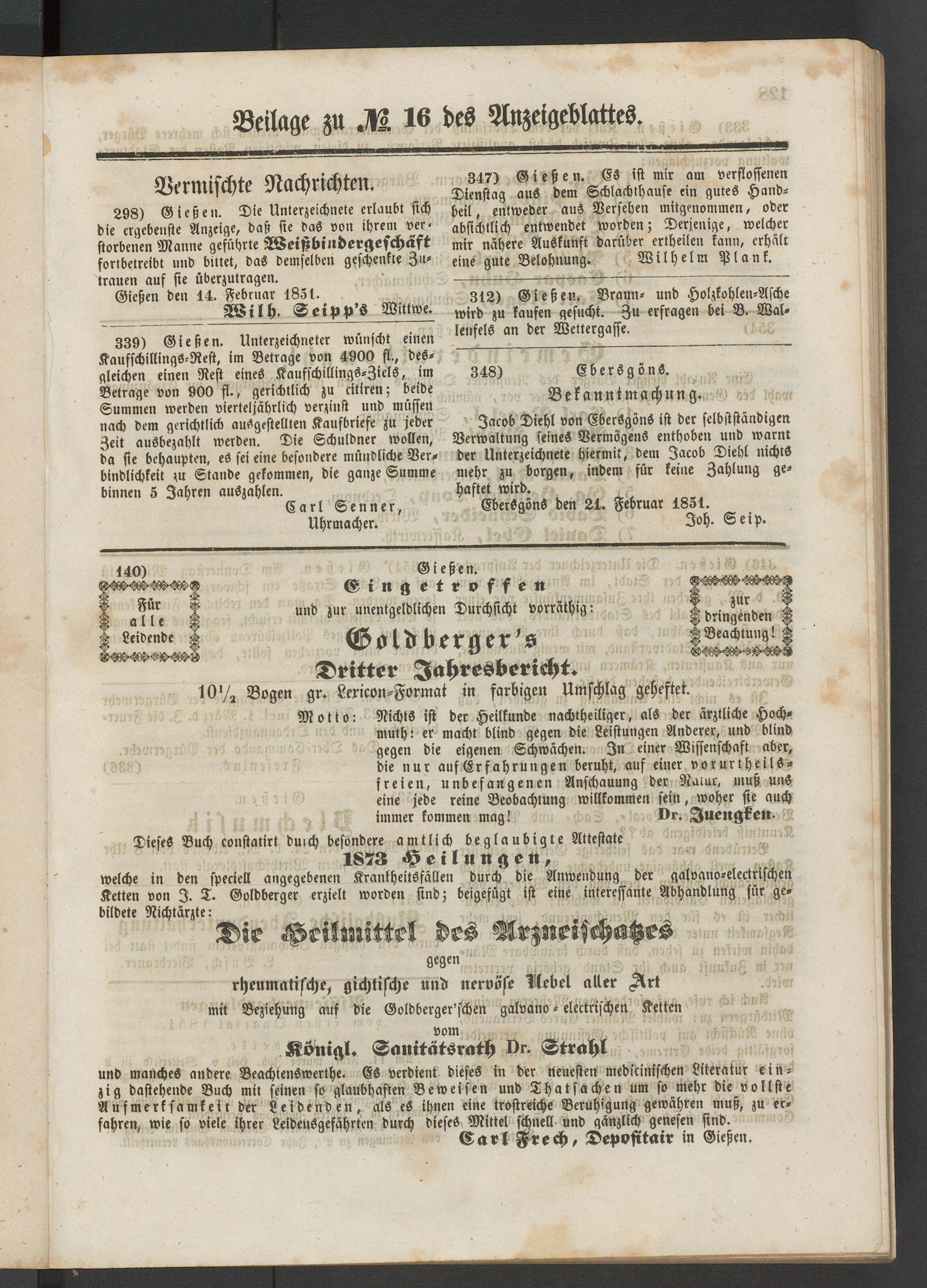 Anzeigeblatt für die Provinzialhauptstadt Gießen. 1840-1867